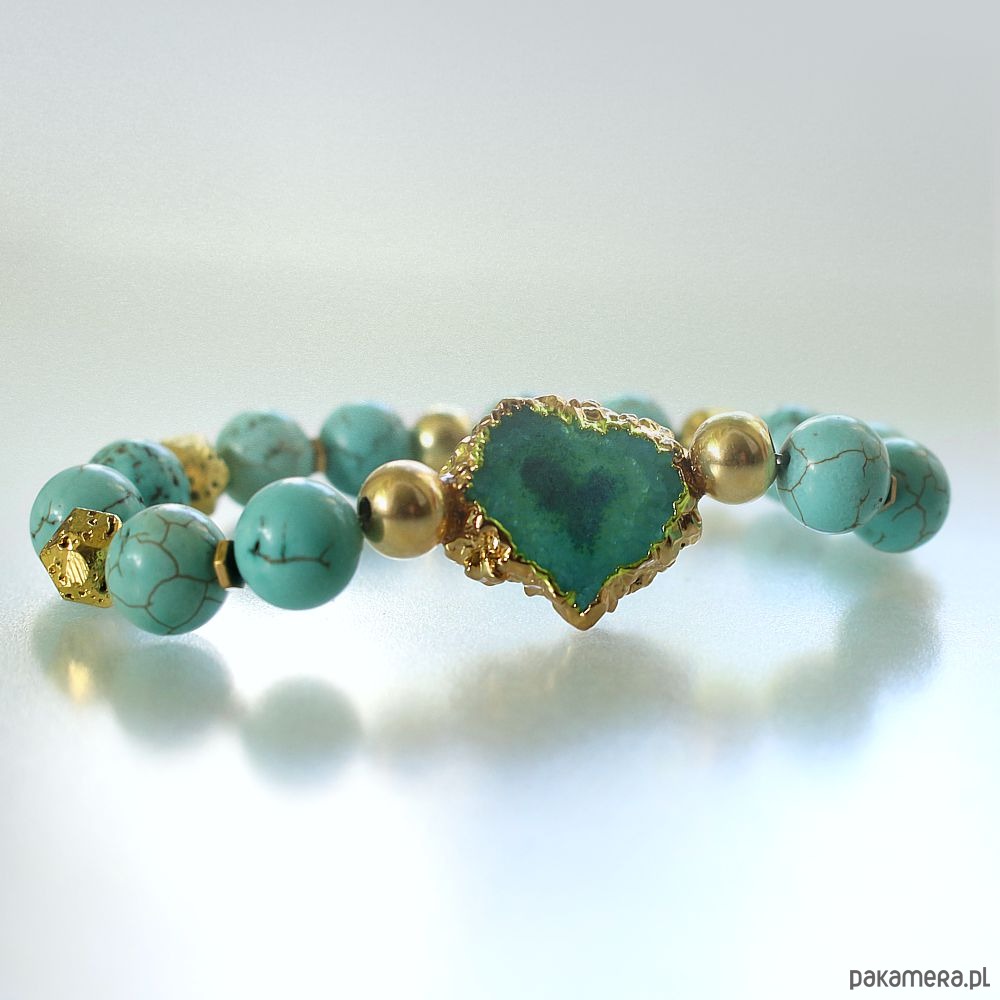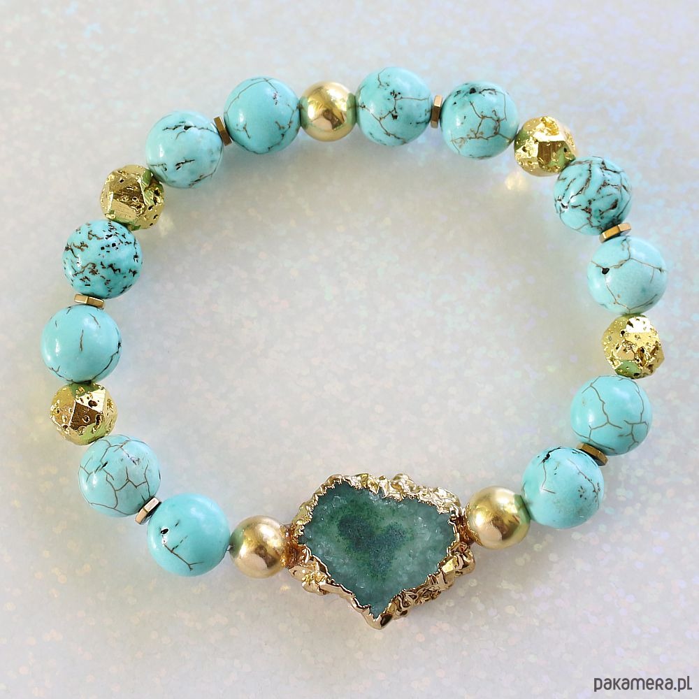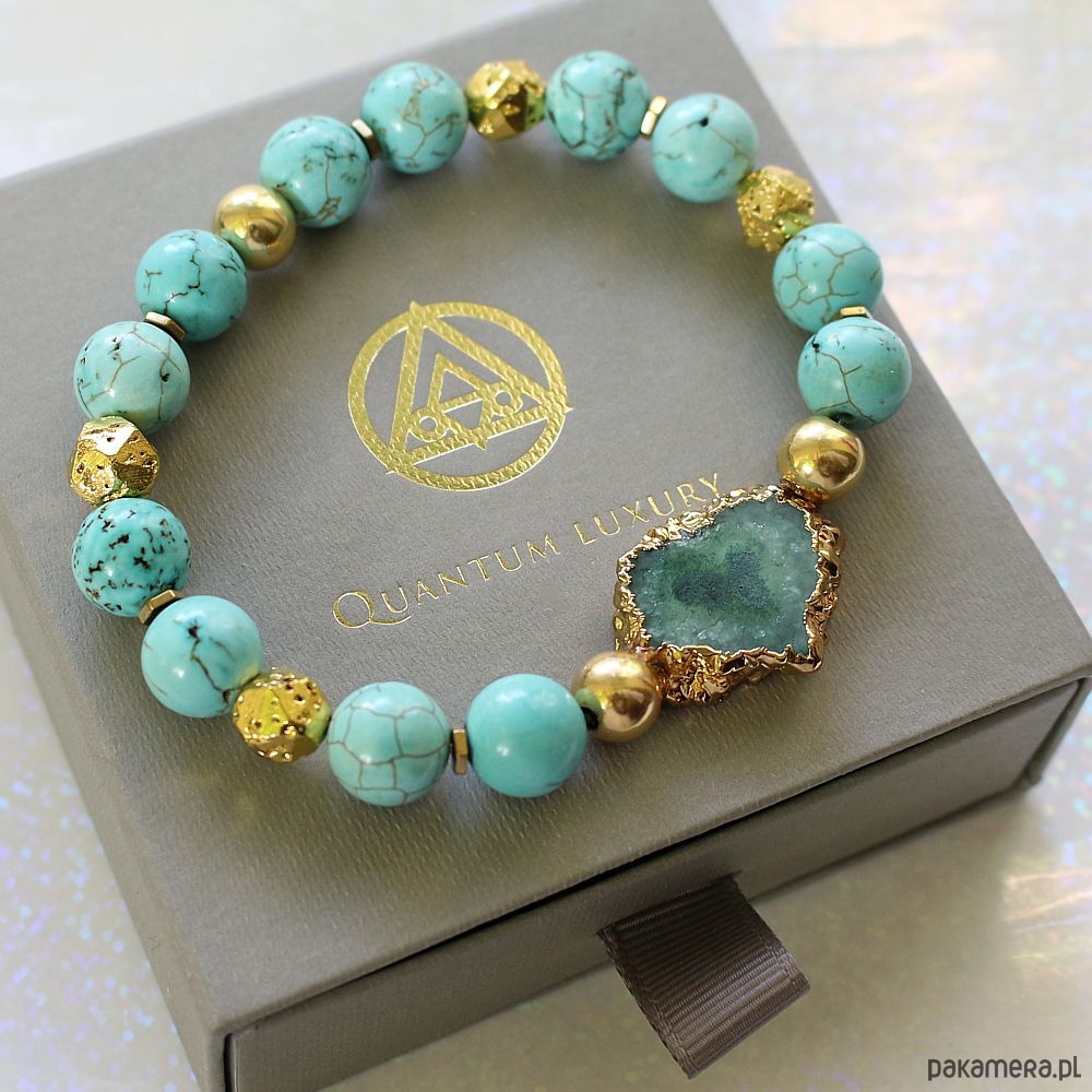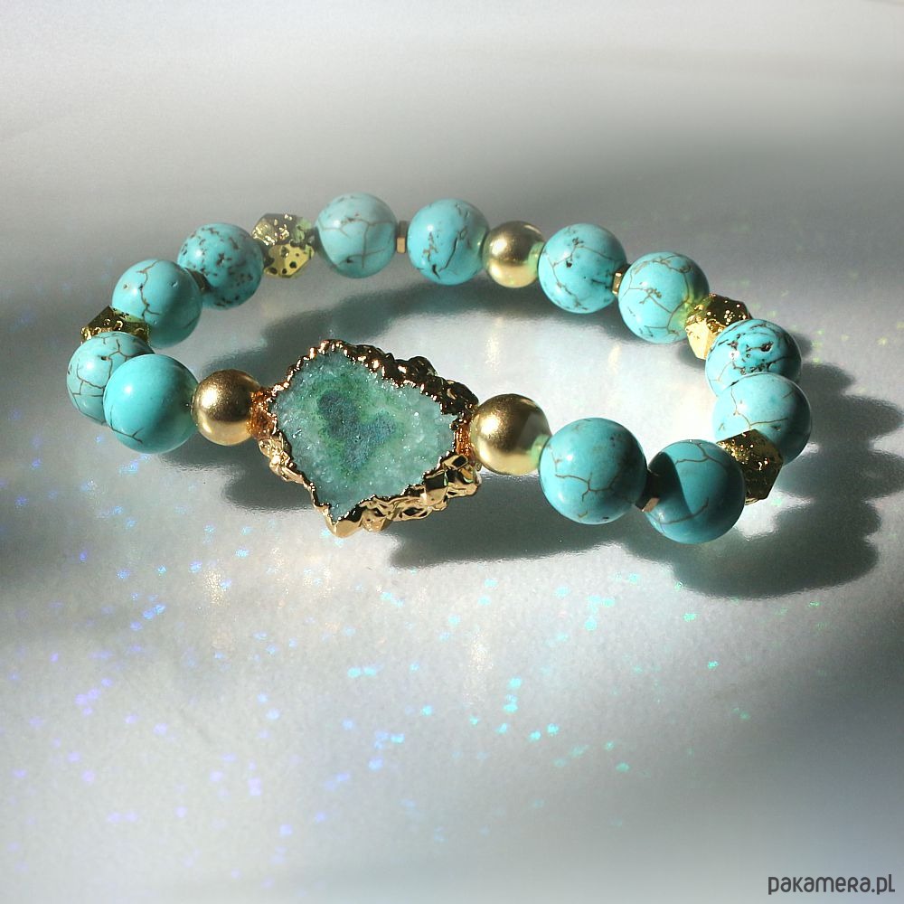 Unikat! Elegancka bransoleta druza agatu, turkus, lawa złoto 24k
