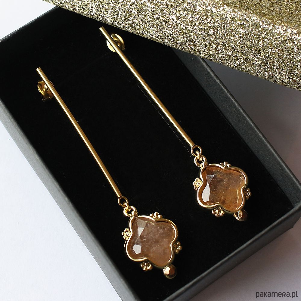 UNIKAT! Eleganckie kolczyki pozłacane kwarc truskawkowy