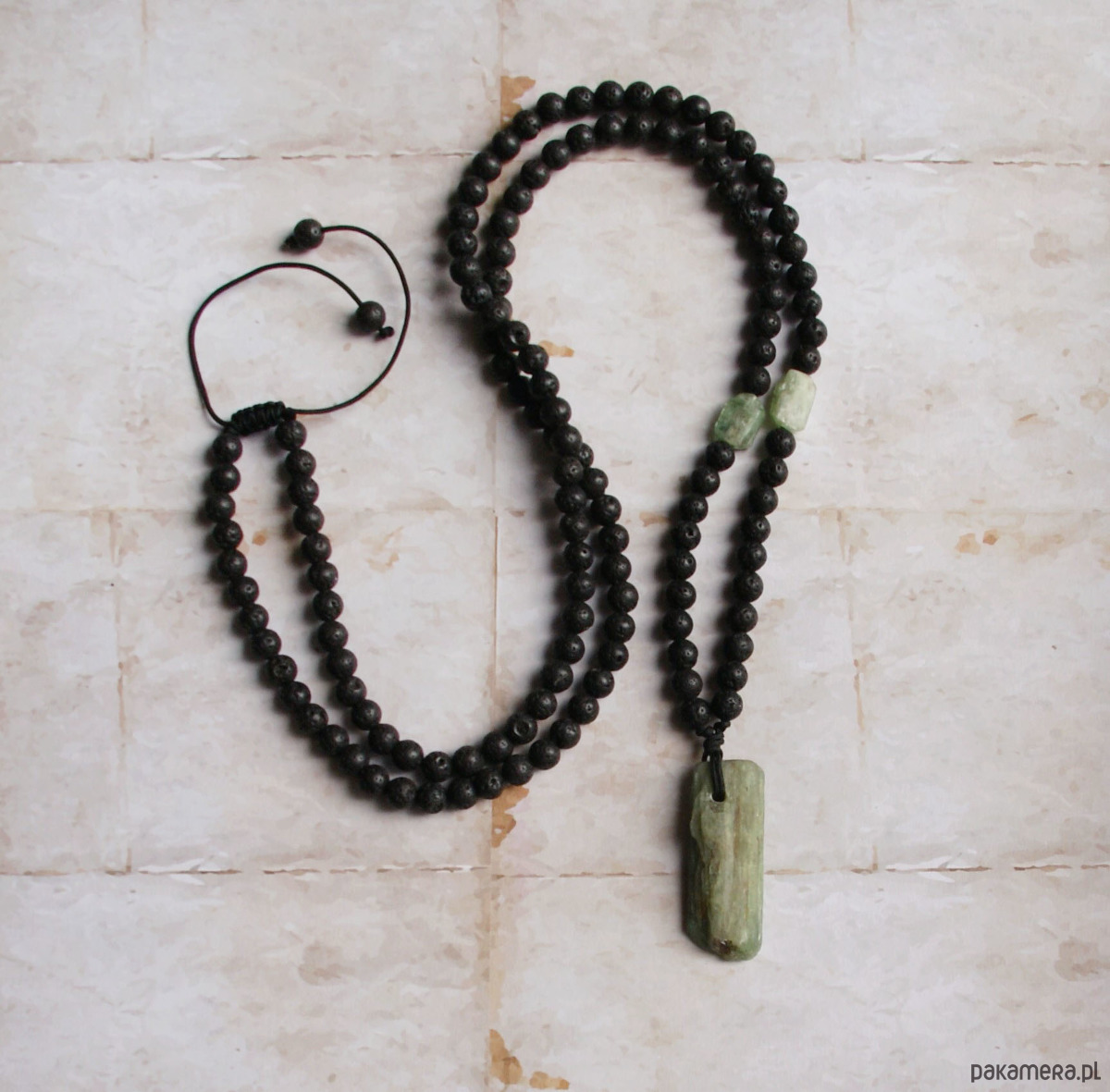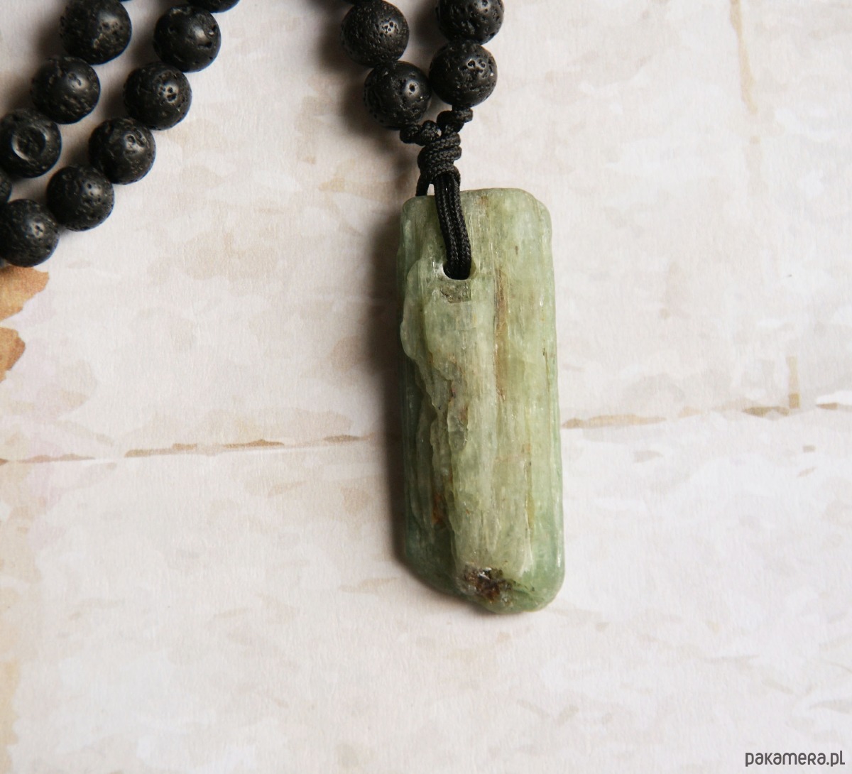 UNIKAT: kyanit zielony, lawa - naszyjnik męski / unisex