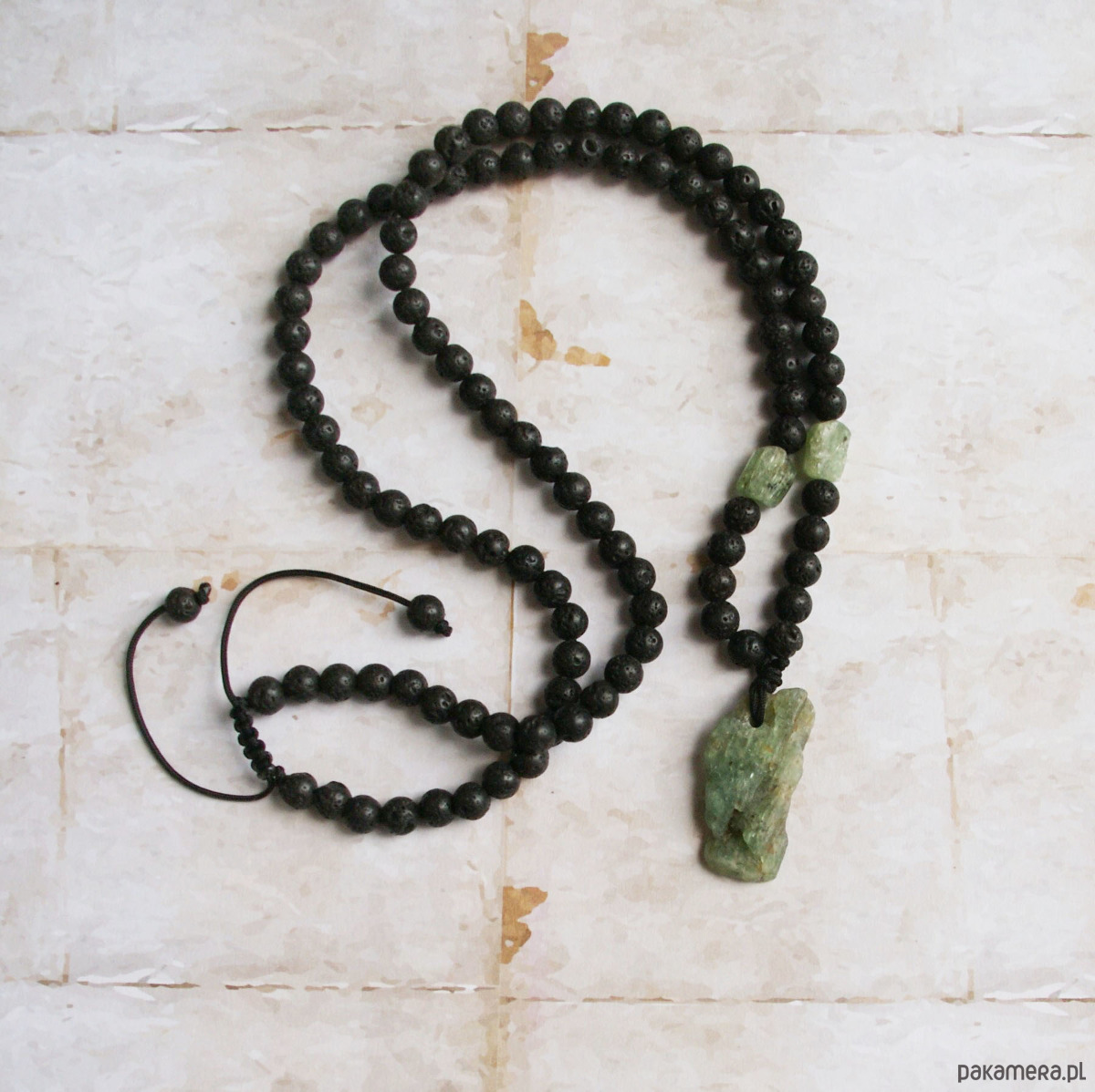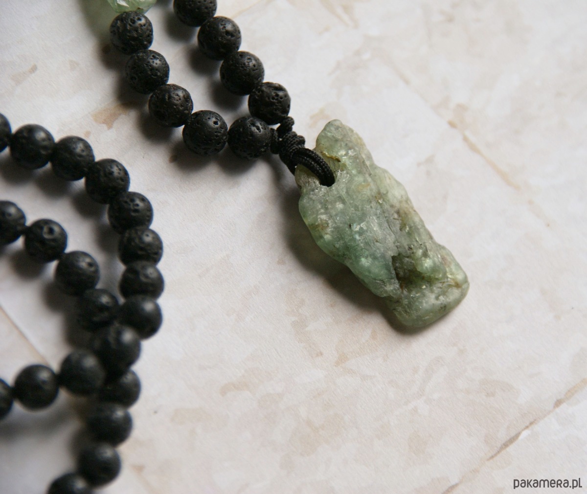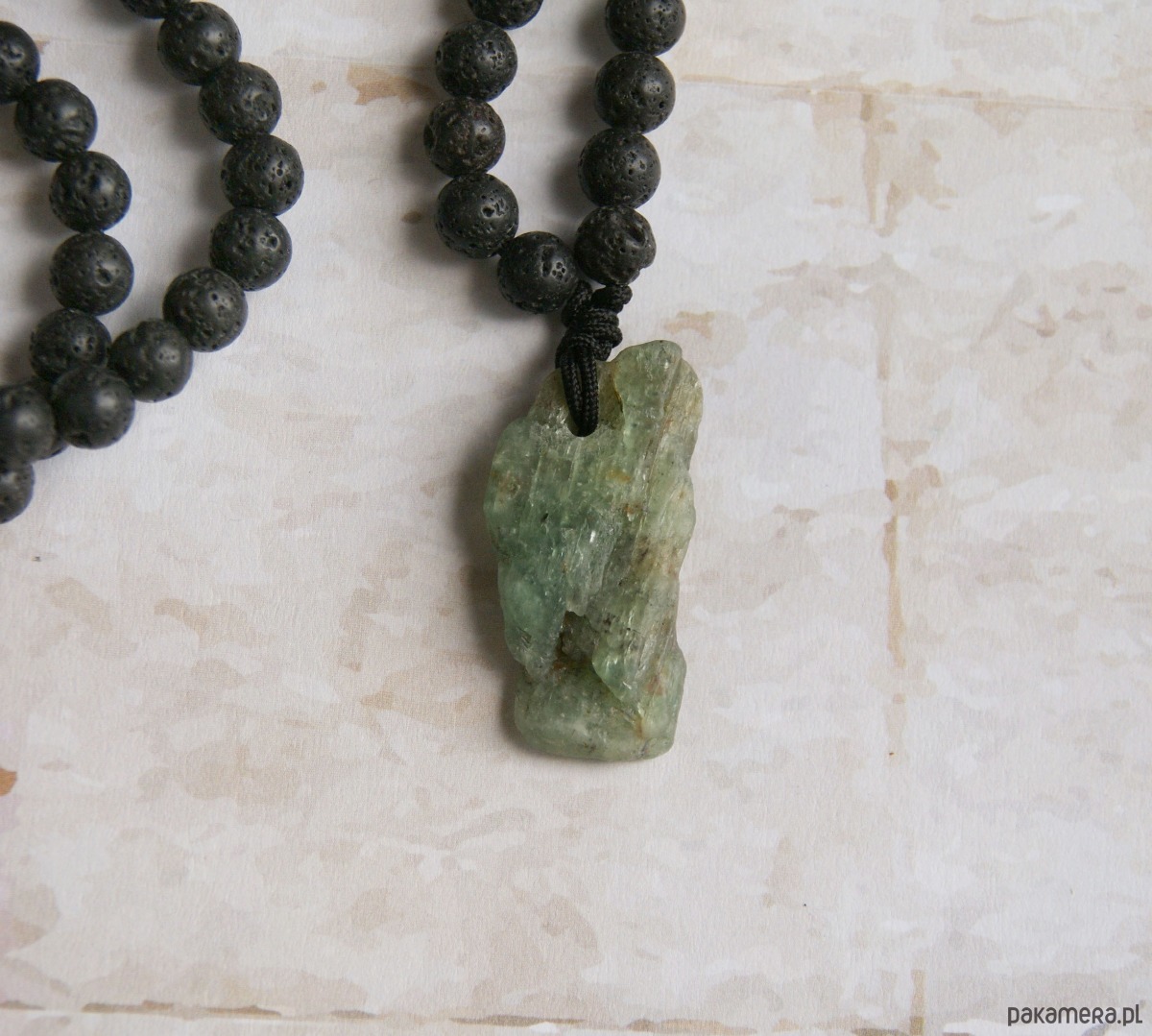 UNIKAT: kyanit zielony, lawa - naszyjnik męski / unisex