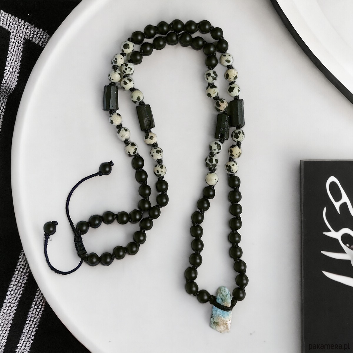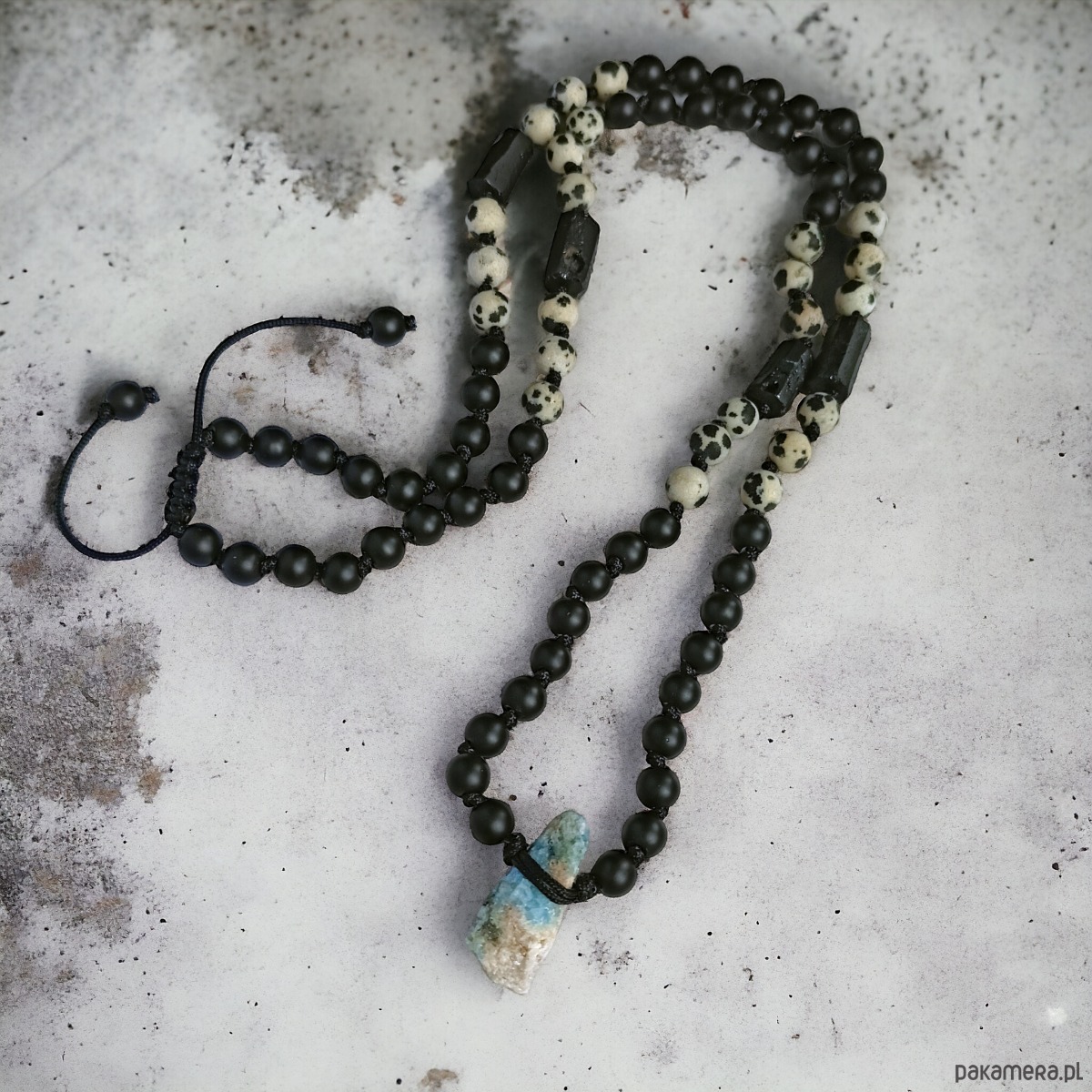 UNIKAT: linaryt, onyks, turmalin, jaspis dalmatyński : naszyjnik MĘSKI