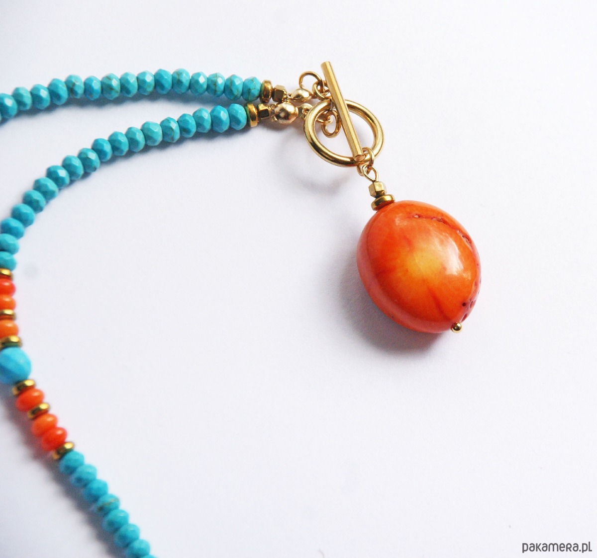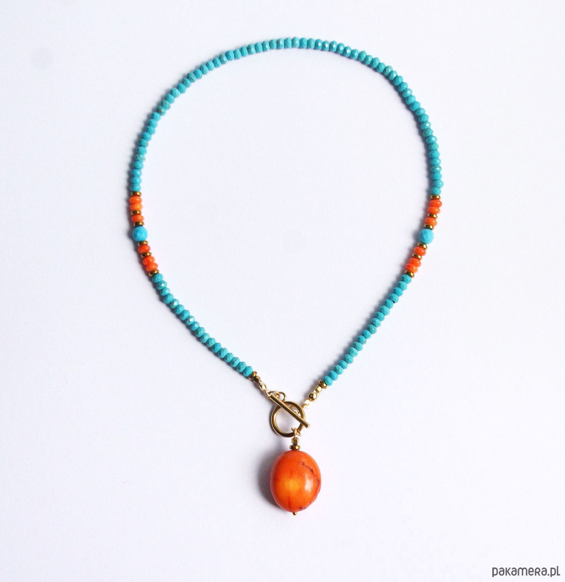 UNIKAT - naszyjnik - choker z koralem - turkusowo-pomarańczowy
