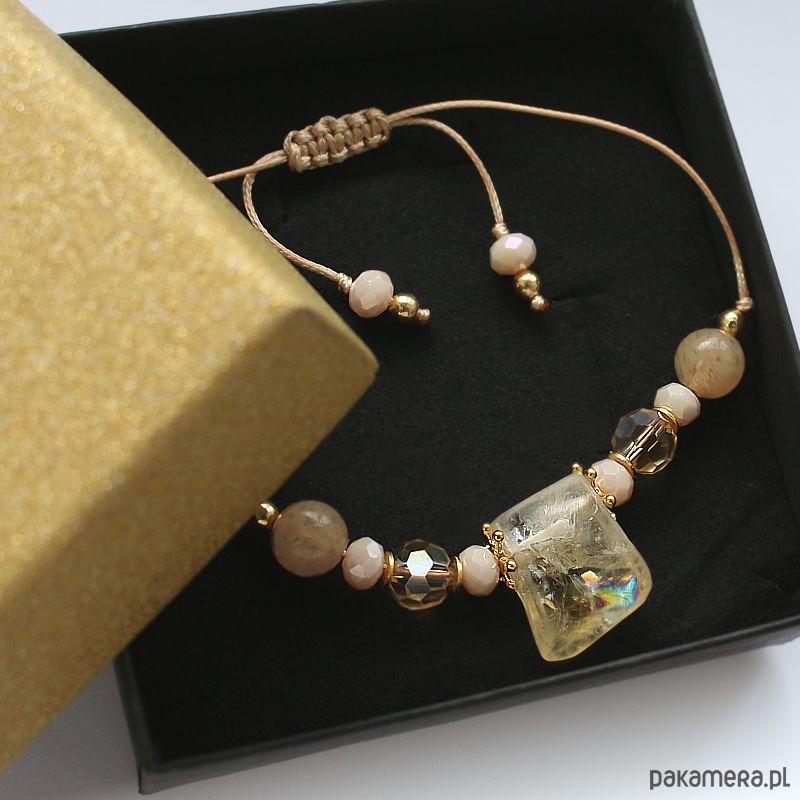 Rodzaj produktu: bransoletka shamballa z regulacją na woskowanym złotym sznurku