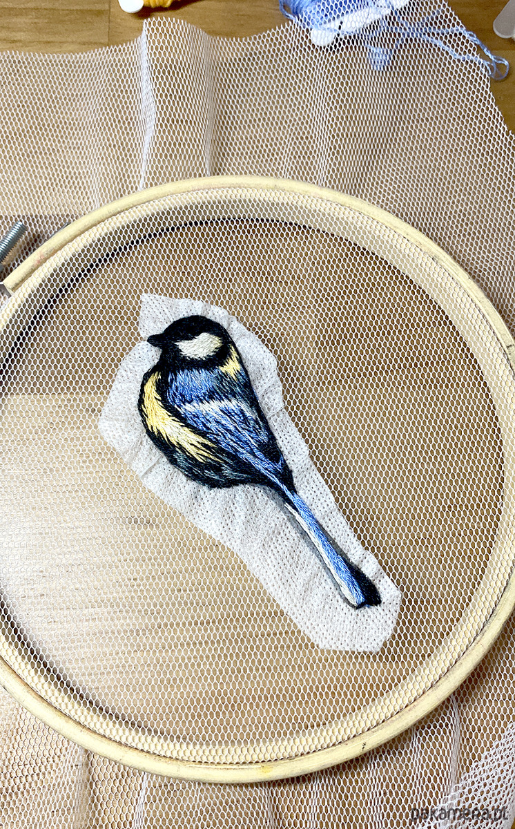 UNIKAT - Sikorka - ręcznie haftowana broszka