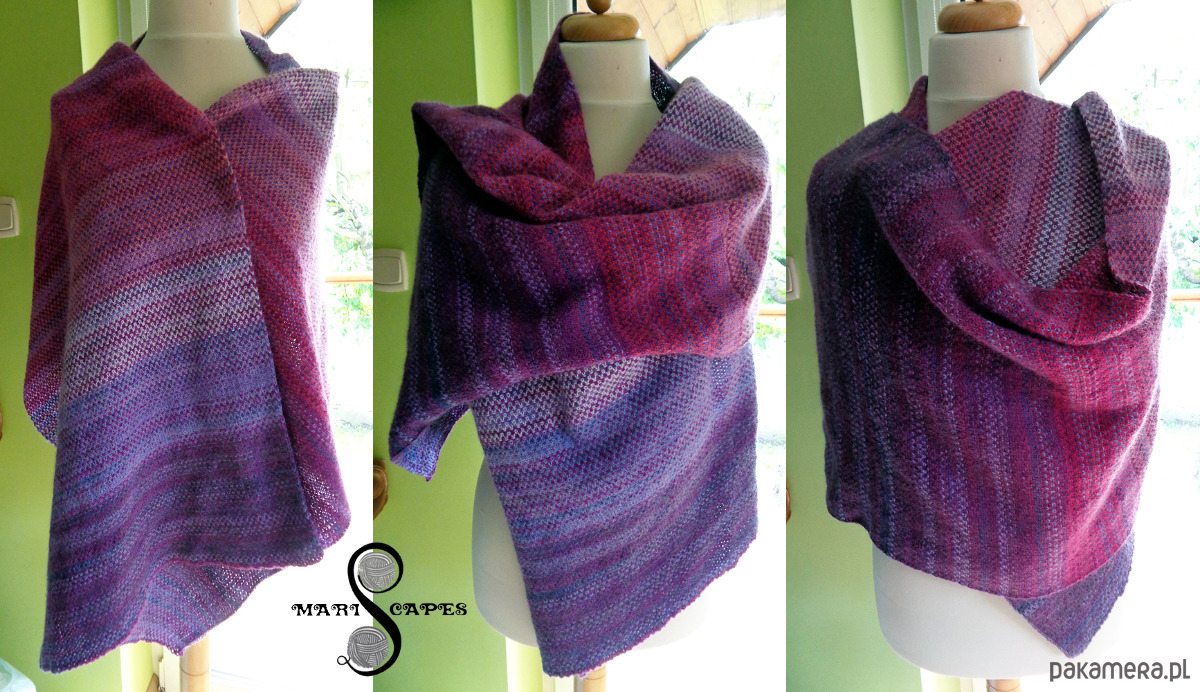 UNIKAT szal dziergany (jak tkany) "Pink & Violet"