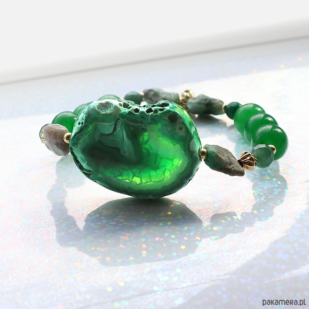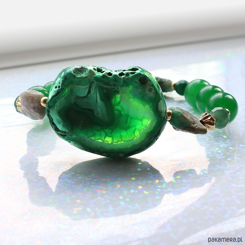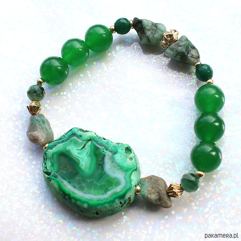 UNIKAT! - Szmaragd, agat, awenturyn, złoto