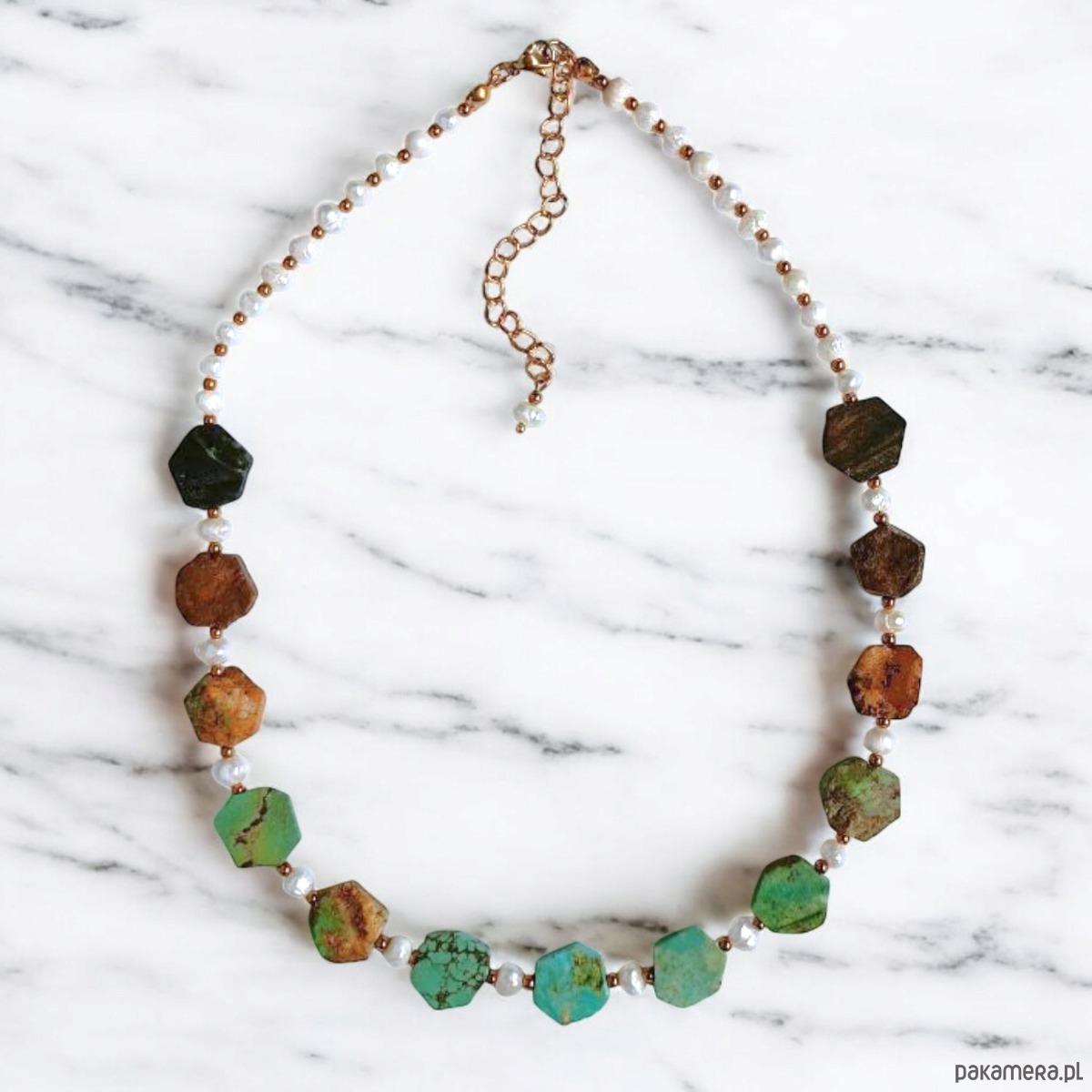 UNIKAT : turkus i perły : naszyjnik unikatowy