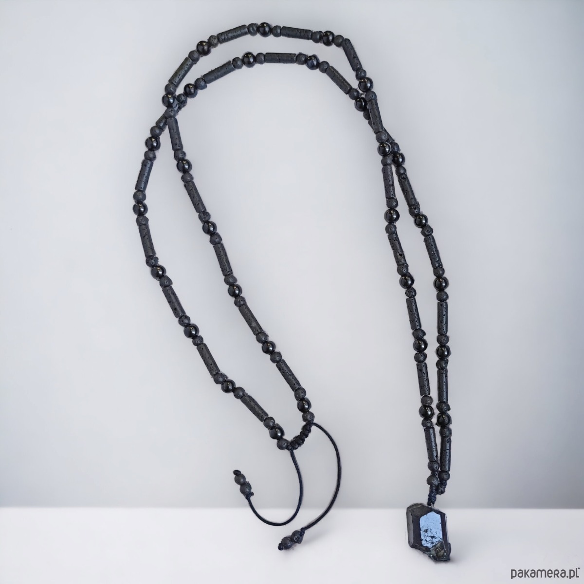 UNIKAT : turmalin, lawa, onyks : długi naszyjnik męski