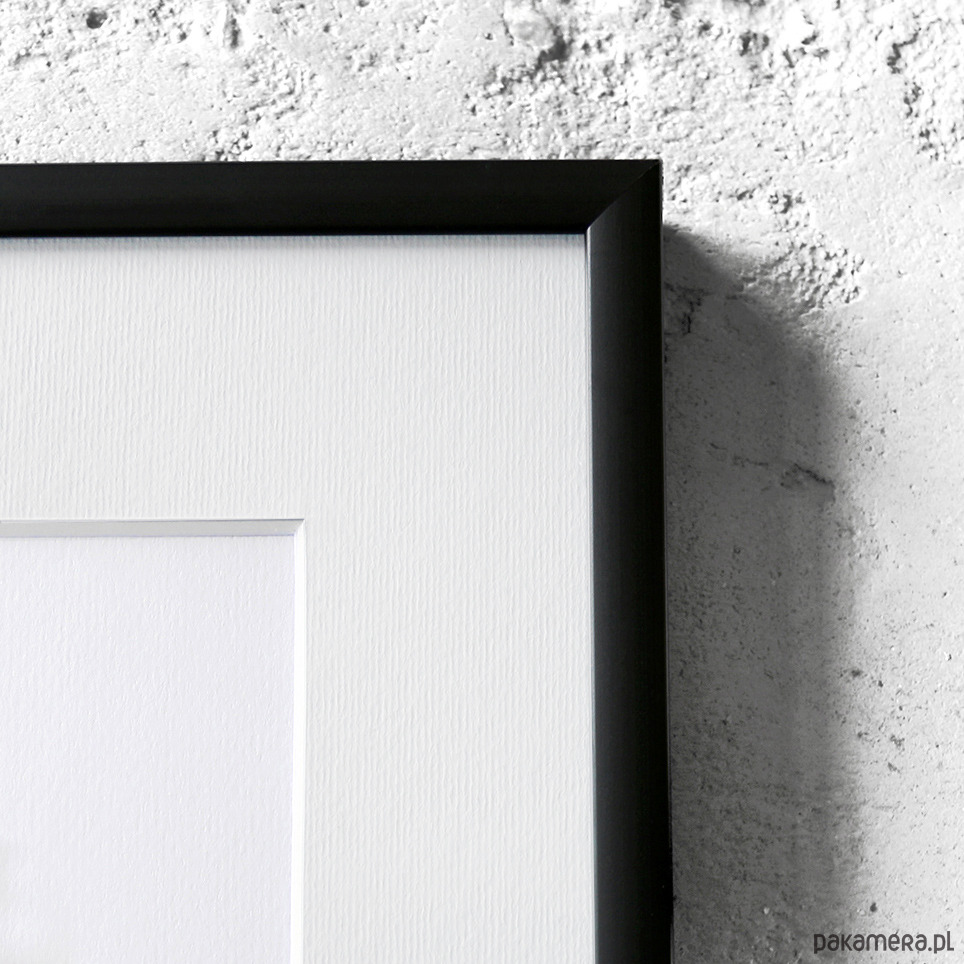 - rysunek oprawiony w białe passe partout i czarną, aluminiową ramę