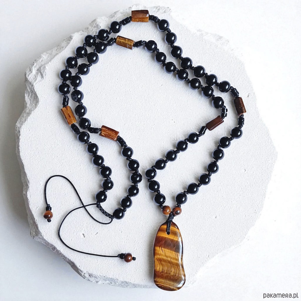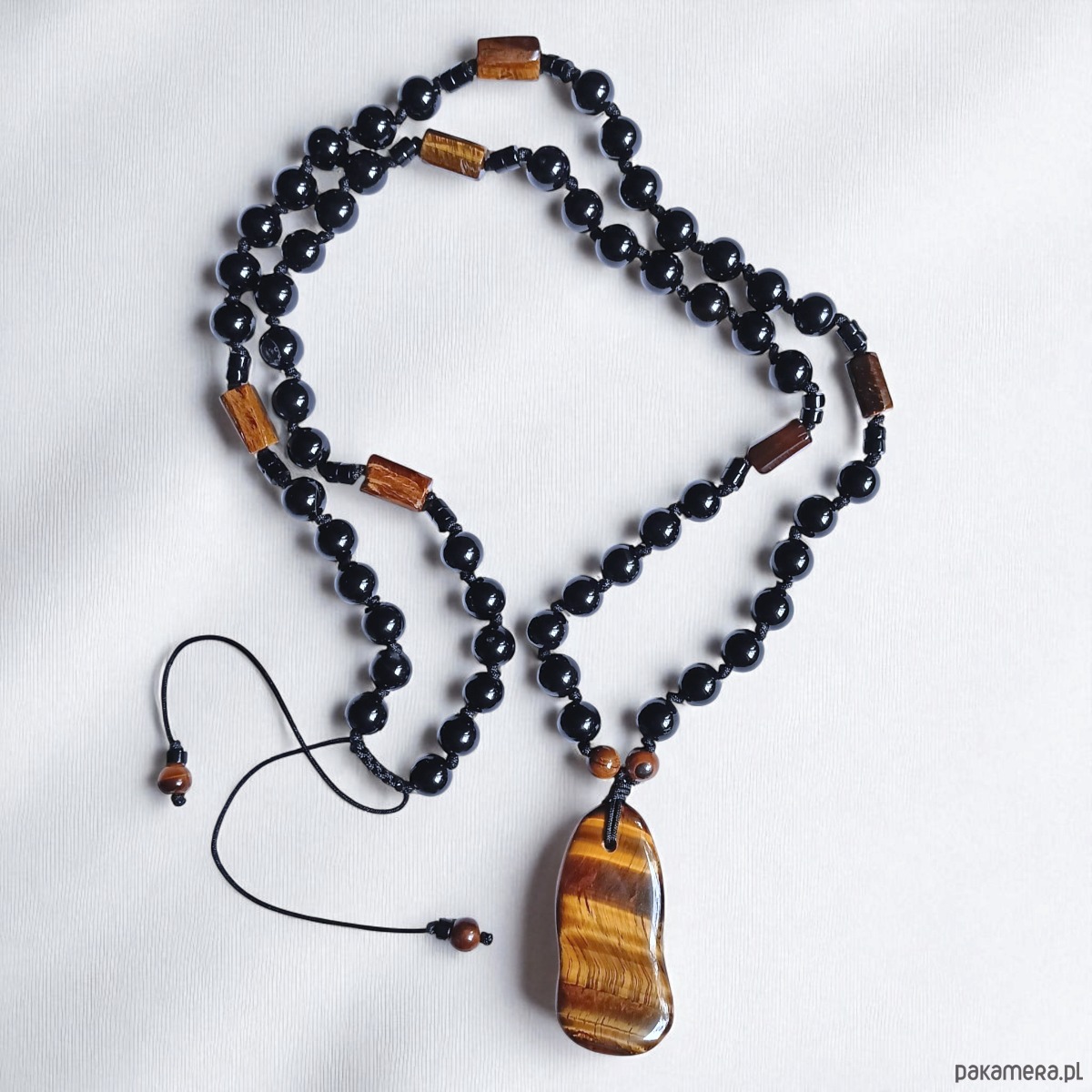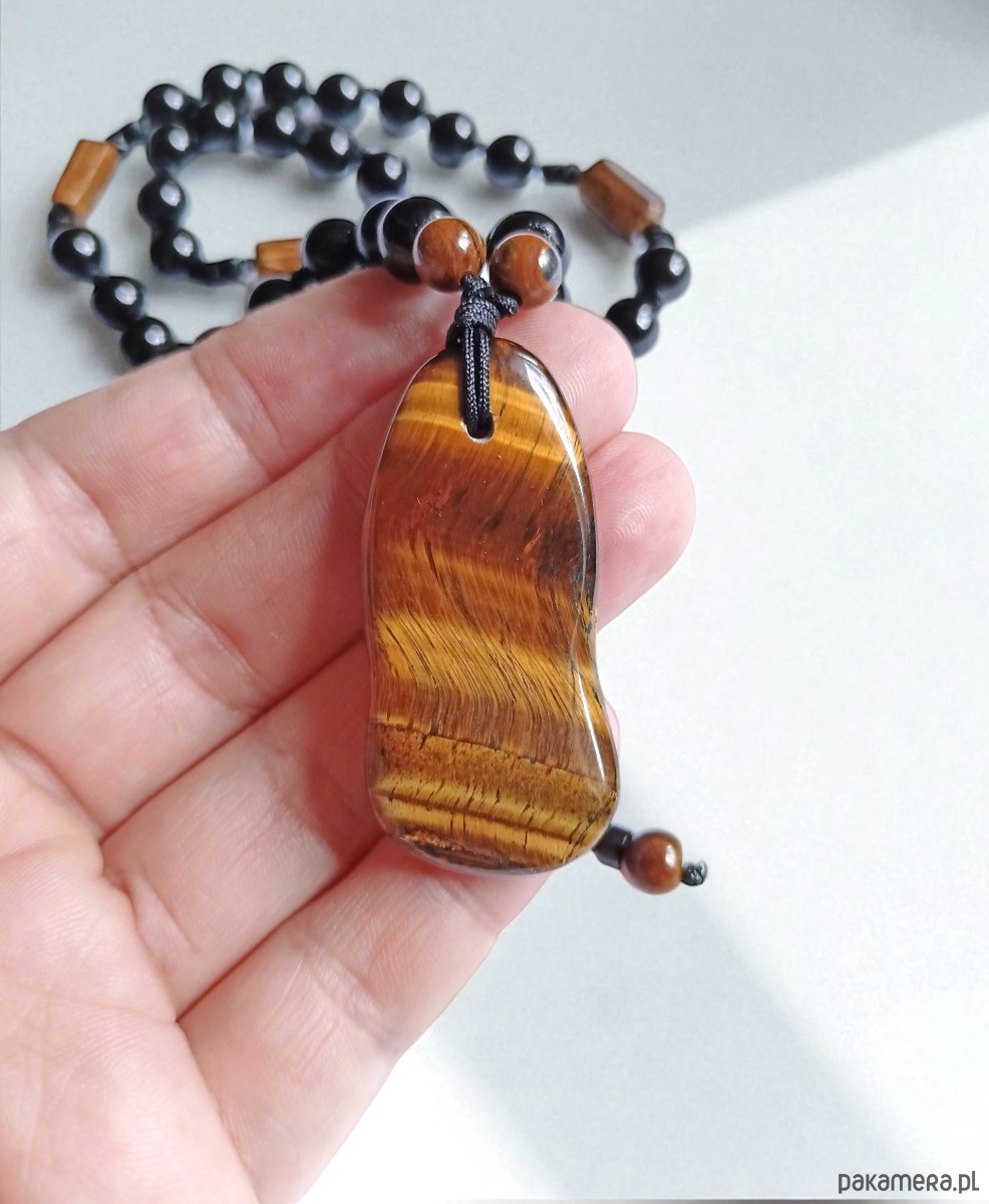 UNIKAT: tygrysie oko, onyks : supełkowany naszyjnik męski