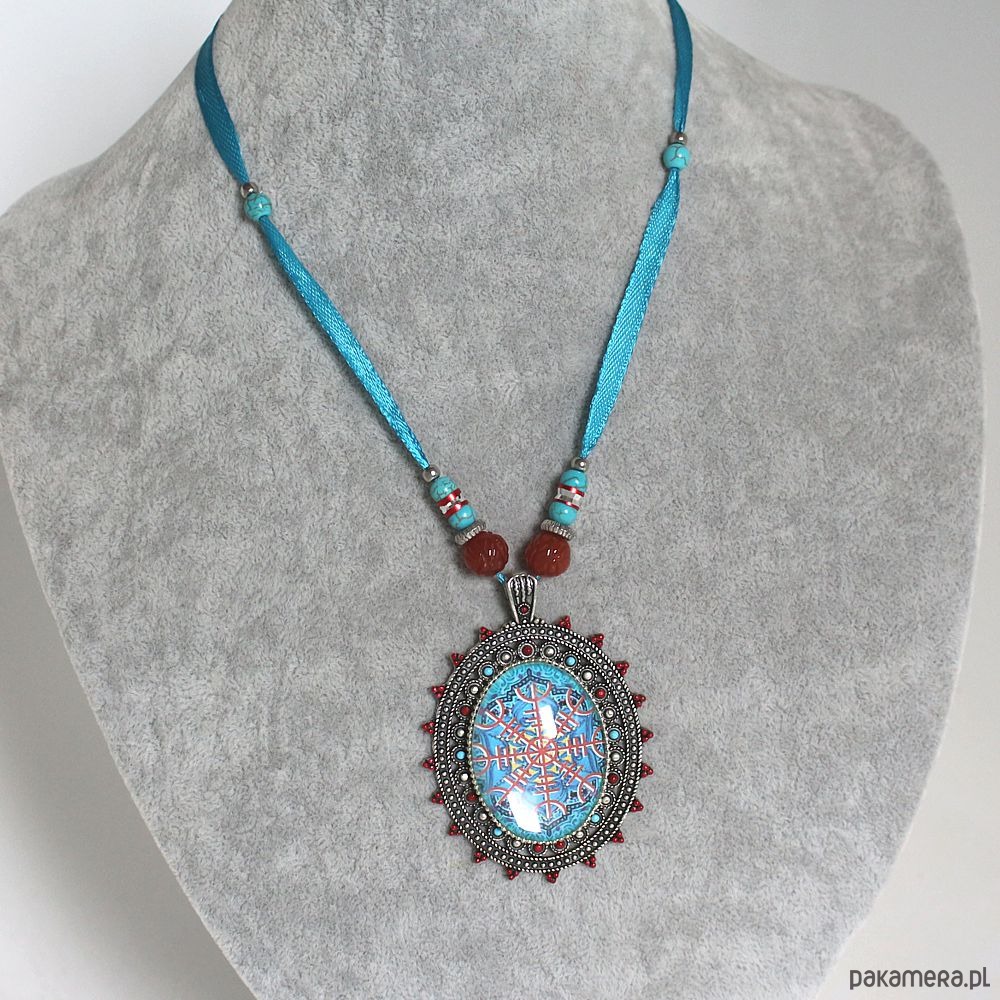 UNIKAT - Wisior Tarcza algizowa, kaeneol, turkus