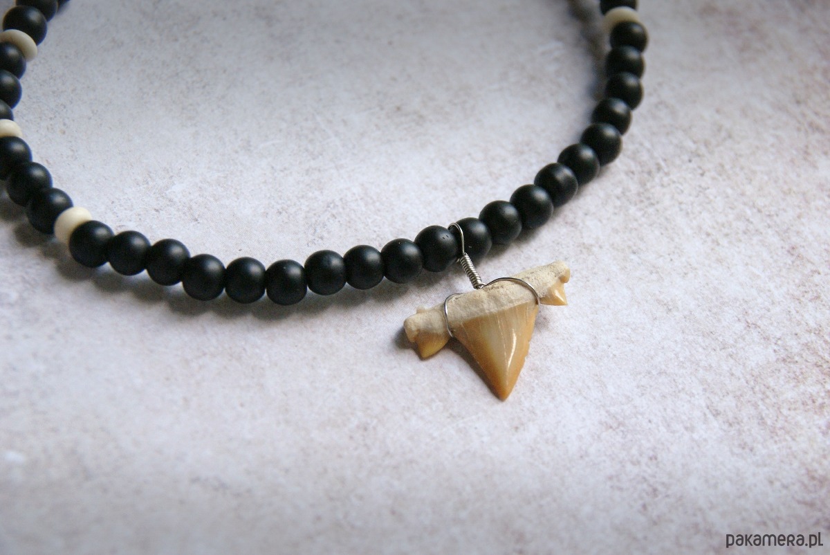 TUTAJ : naszyjnik męski z PRAWDZIWYM KŁEM REKINA (wersja półdługa) na solidnym sznurku nylonowym - bez zapięcia.