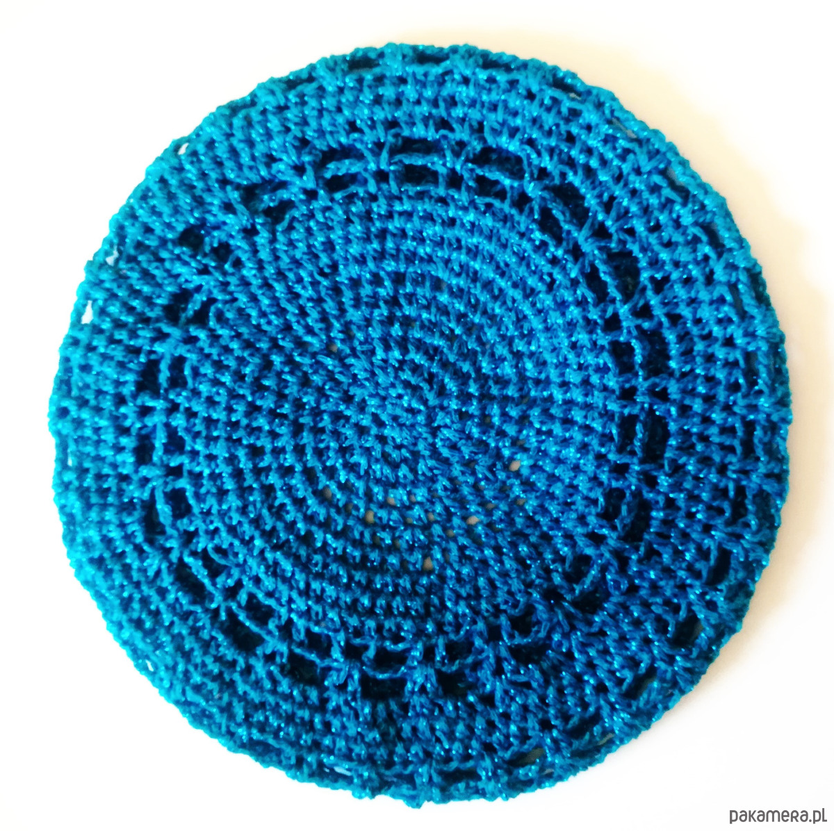 Unikatowa ażurowa czapka w kolorze turkusowym. .