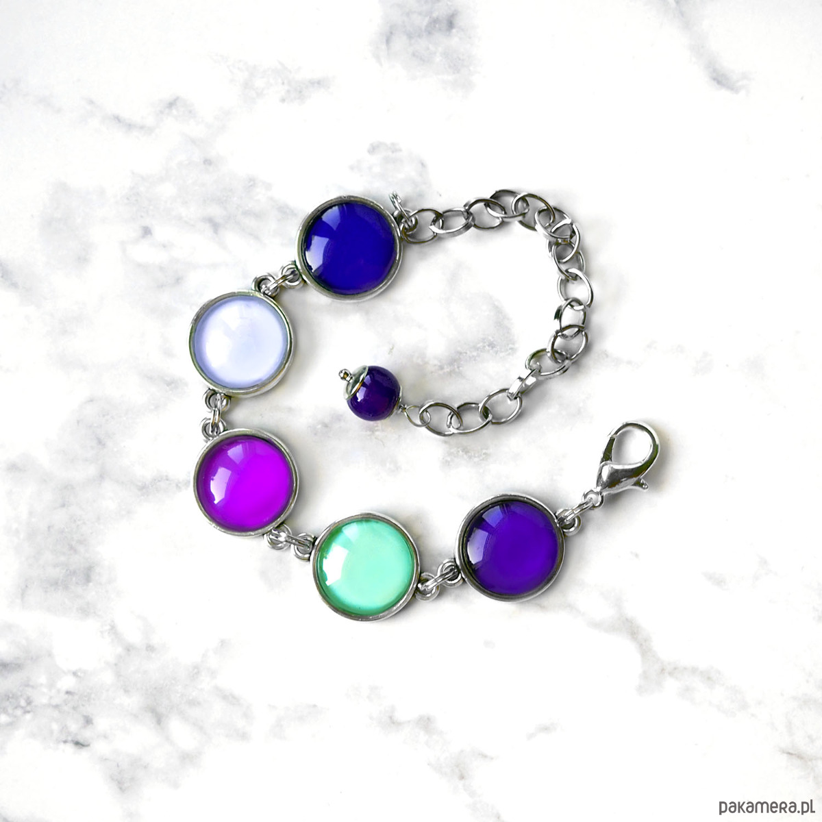 Bardzo efektowna bransoletka ze szkłem w trzech kolorach, w oprawie w kolorze antycznego srebra.