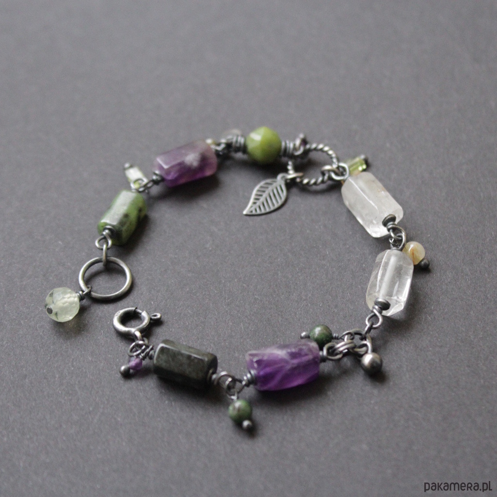 Bransoletka UNIKAT wykonana została z oksydowanego srebra próby 925 oraz minerałów: