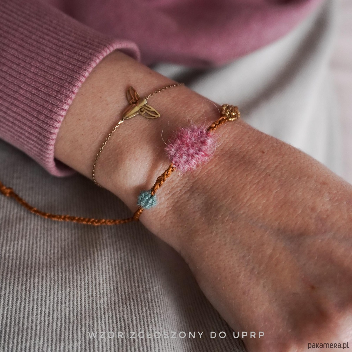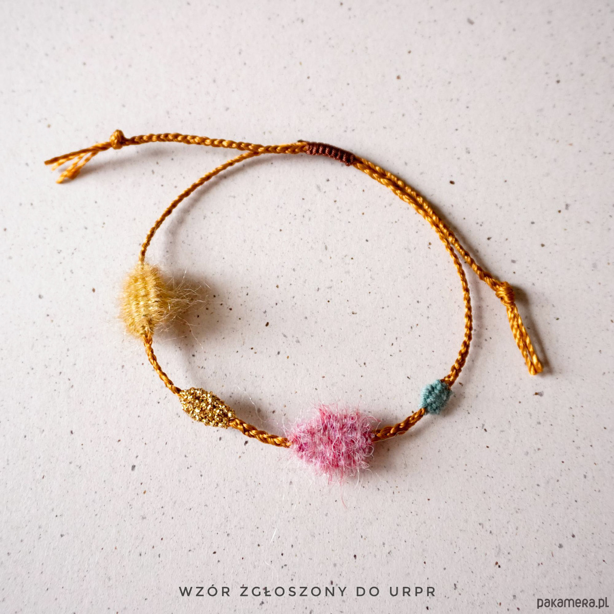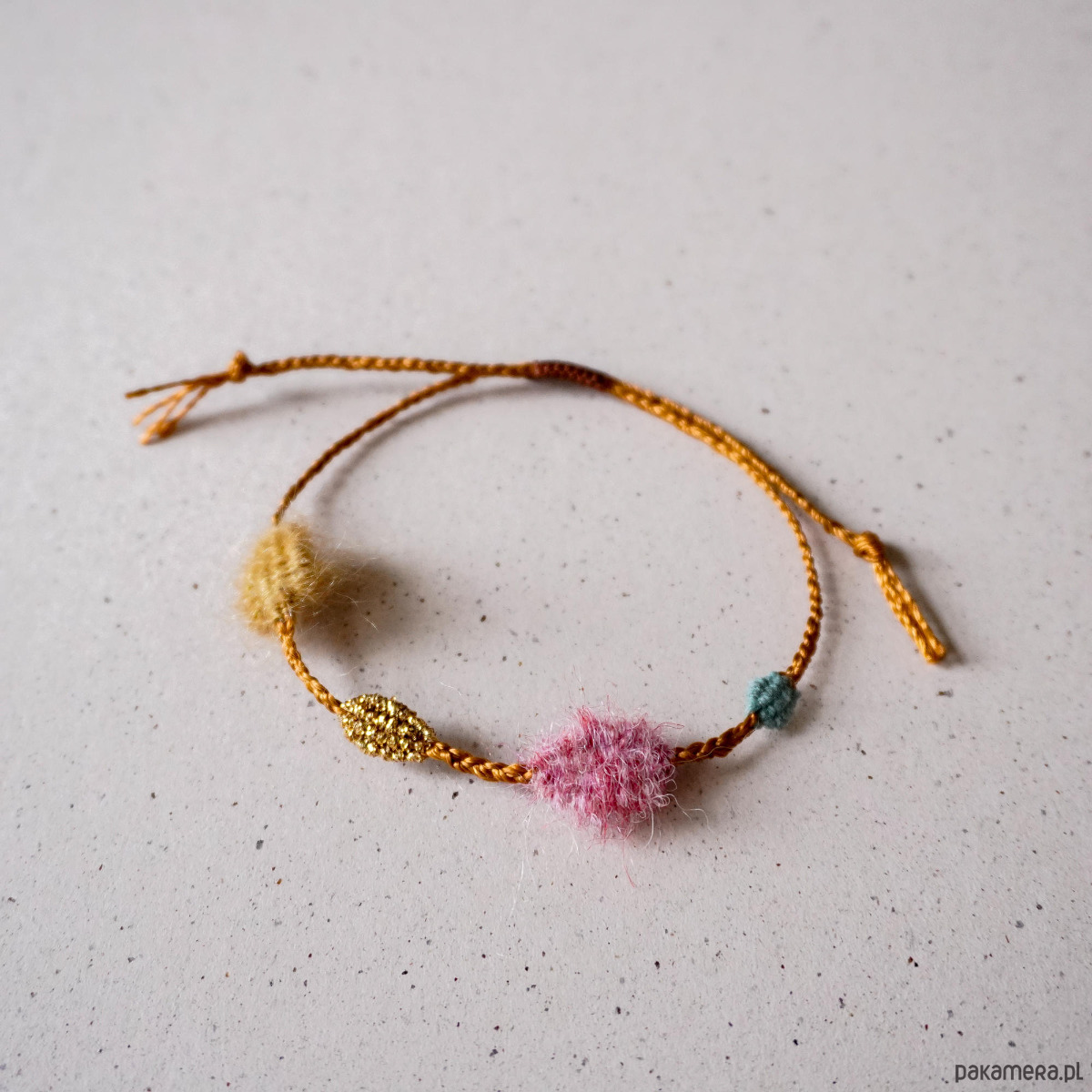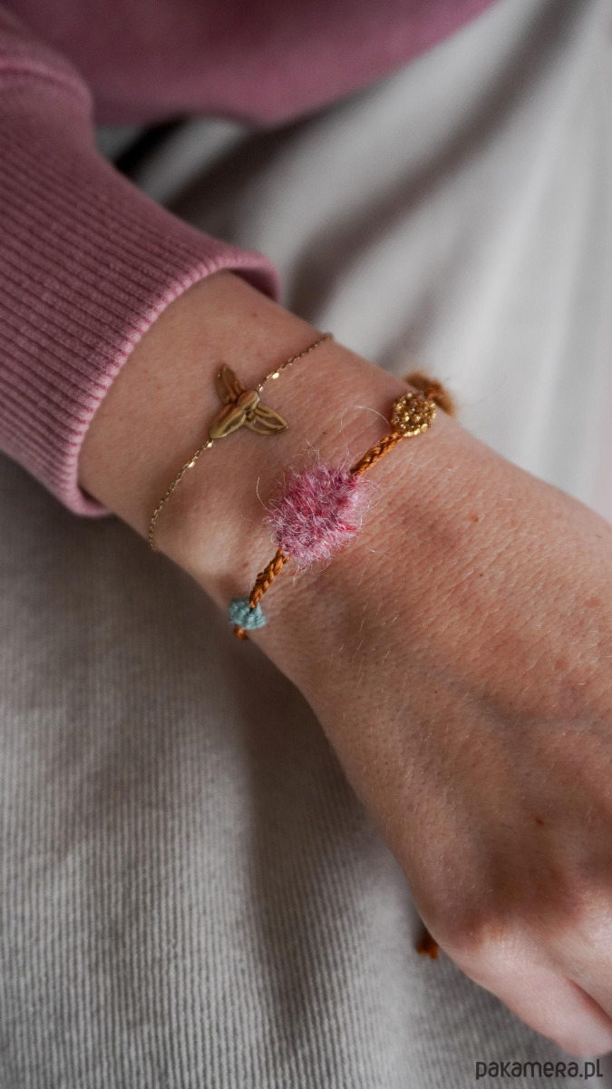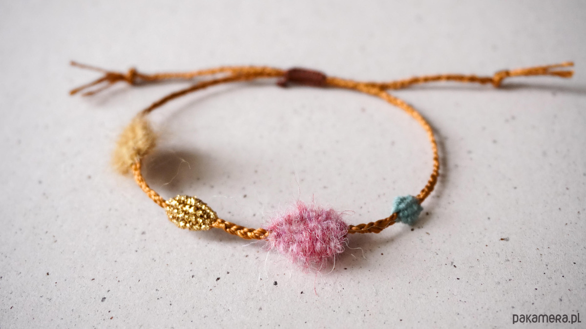 Unikatowa bransoletka na sznurku z elementami tkanymi