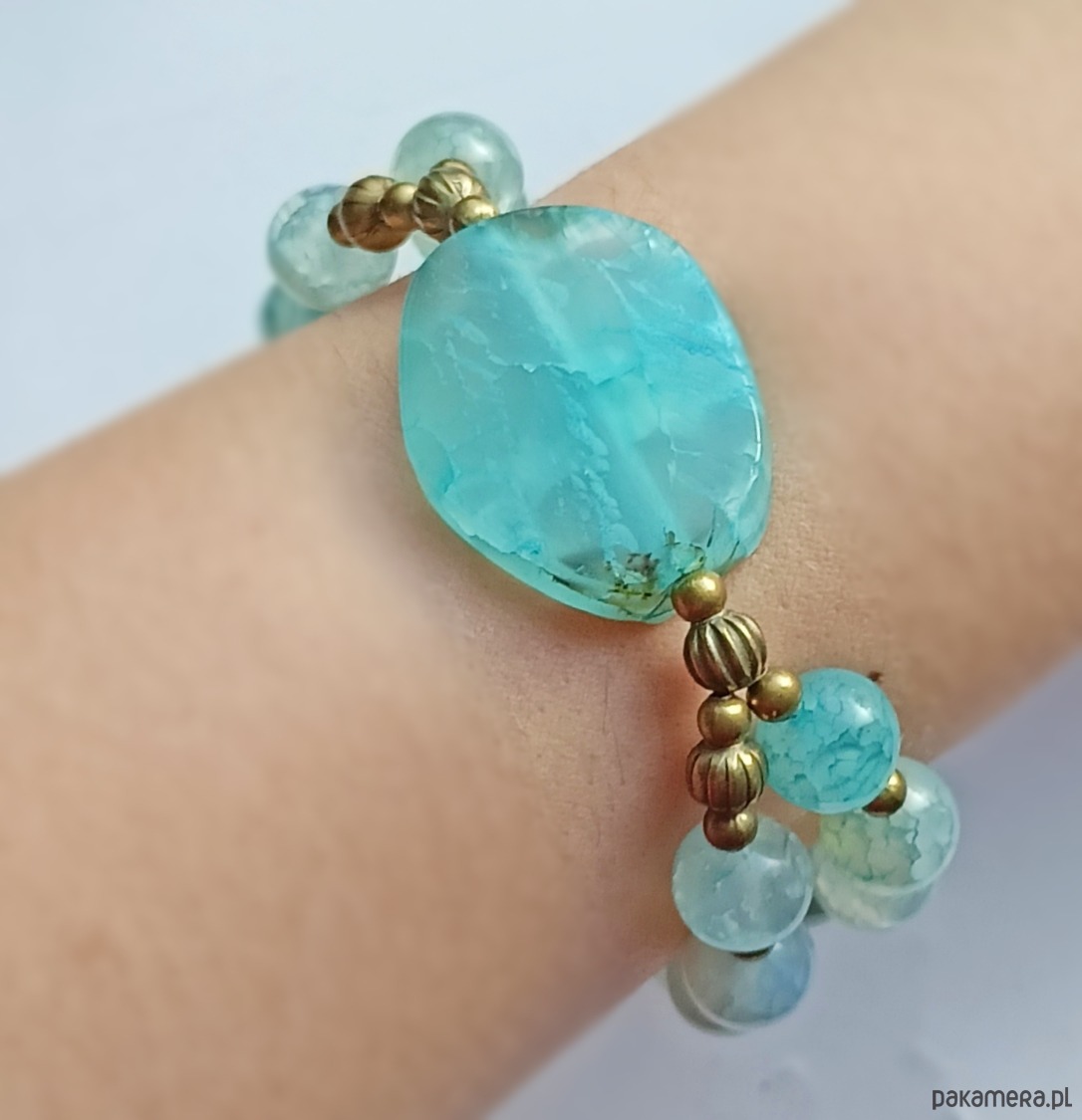 niezwykle efektowna bransoletka wykonana z agatu aqua w odcieniach błękitu i turkusu, z lekką domieszką brązu.