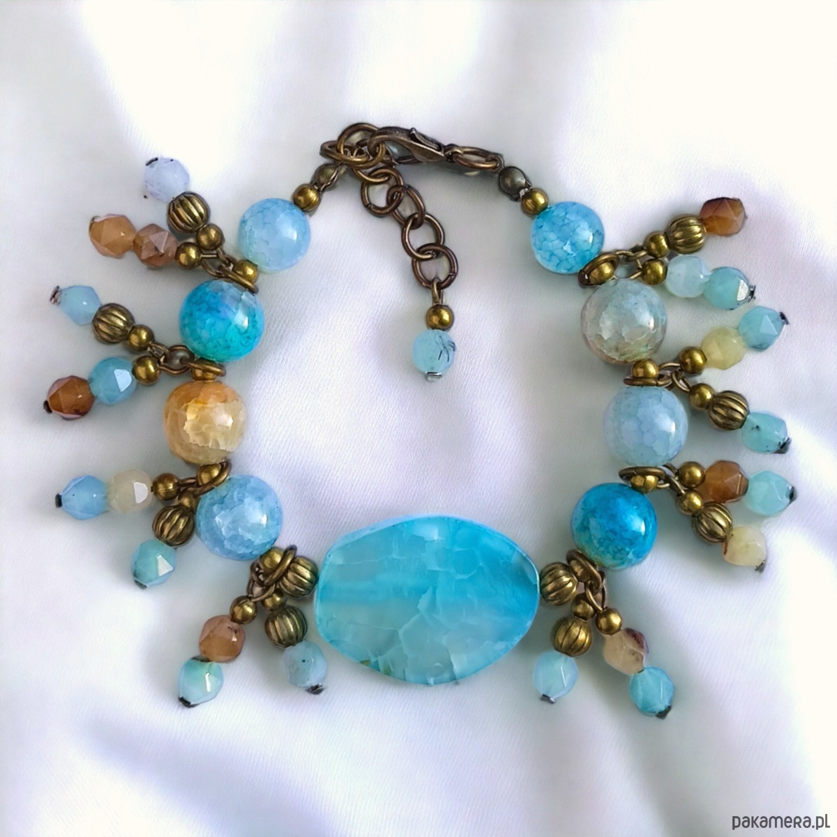 niezwykle efektowna bransoletka wykonana z agatu aqua w odcieniach błękitu i turkusu, z lekką domieszką brązu.