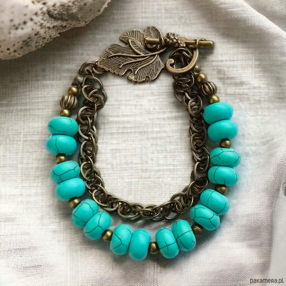 UNIKATOWA bransoletka : turkus i stare złoto : etno