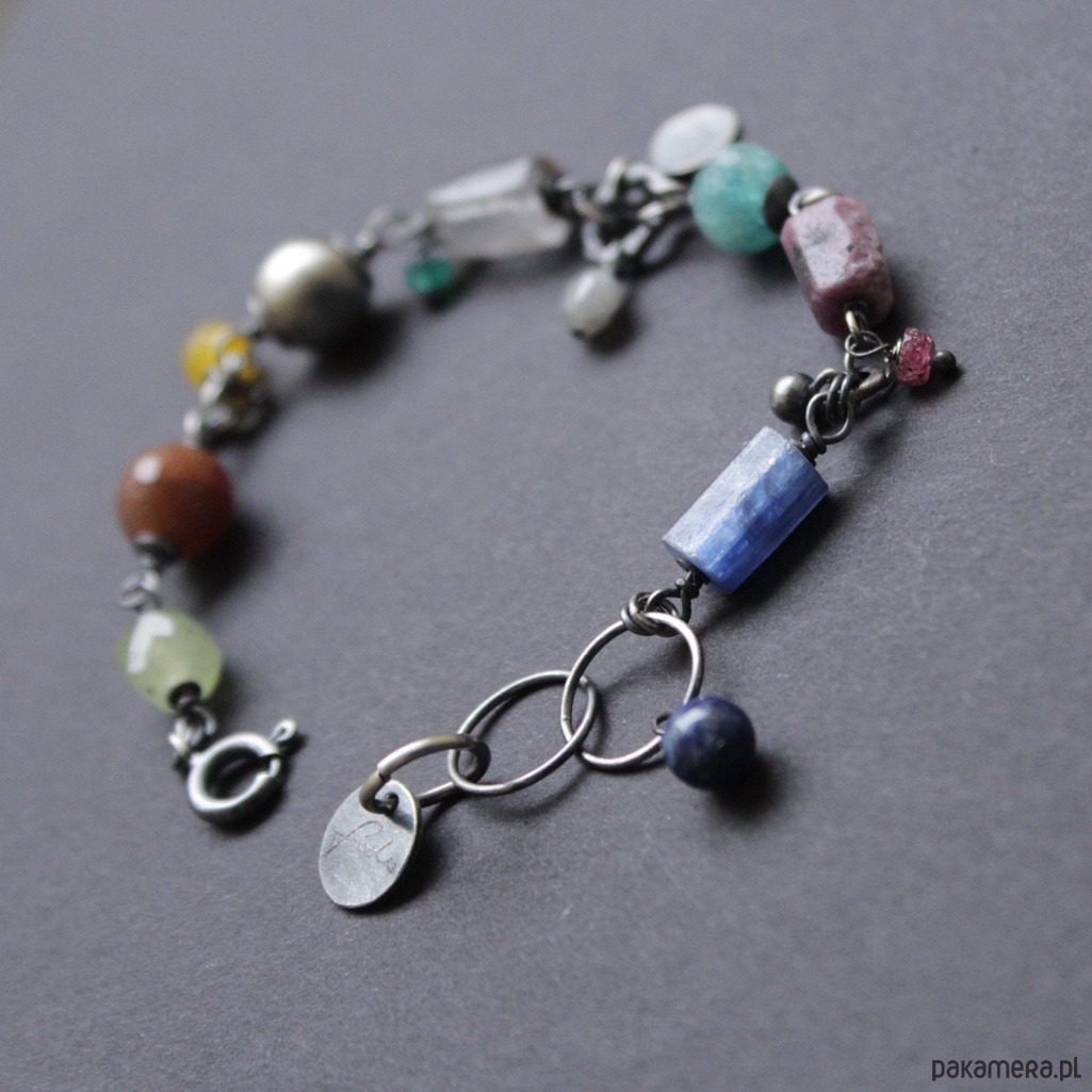 Bransoletka UNIKAT wykonana została z oksydowanego srebra próby 925 oraz minerałów: