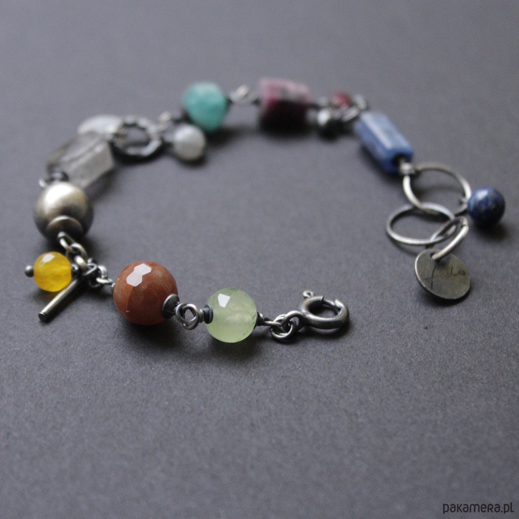 Bransoletka UNIKAT wykonana została z oksydowanego srebra próby 925 oraz minerałów: