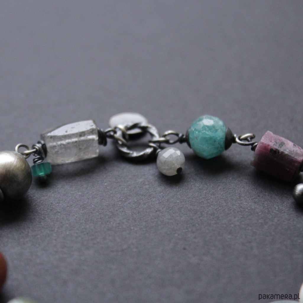 Oksydowane srebro pięknie podkreśla kolory kamieni.