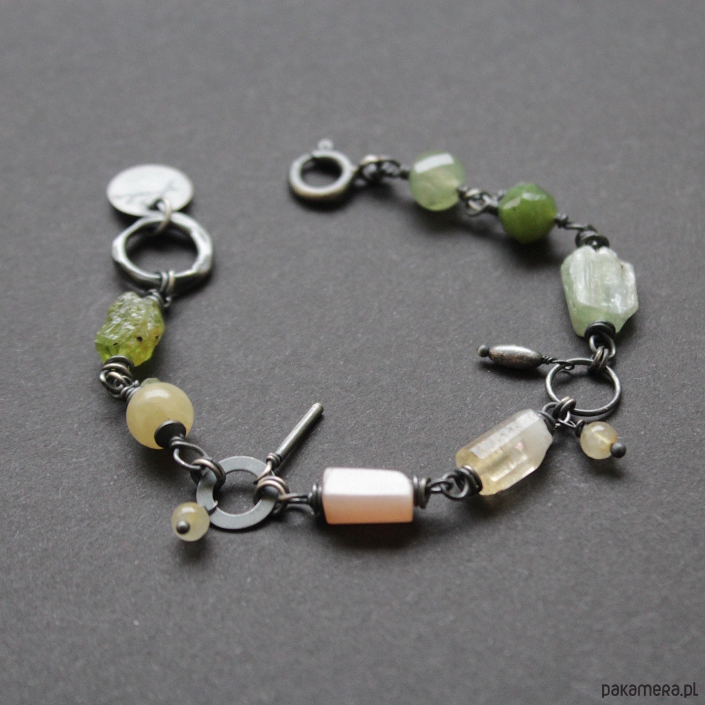 Bransoletka UNIKAT wykonana została z oksydowanego srebra próby 925 oraz minerałów: