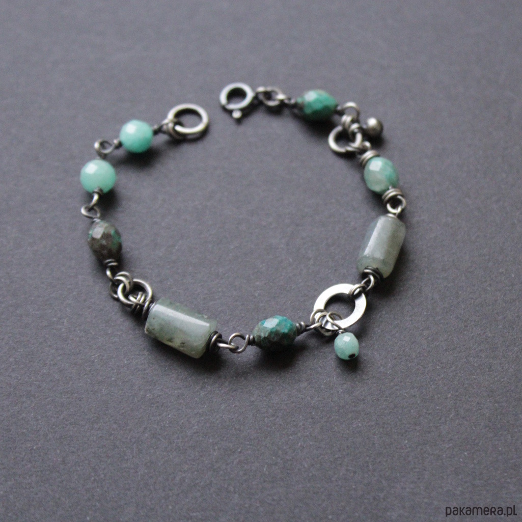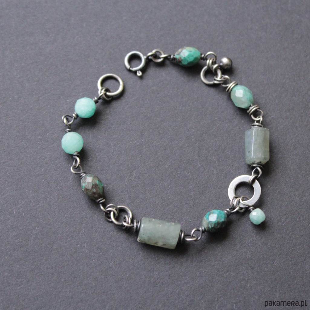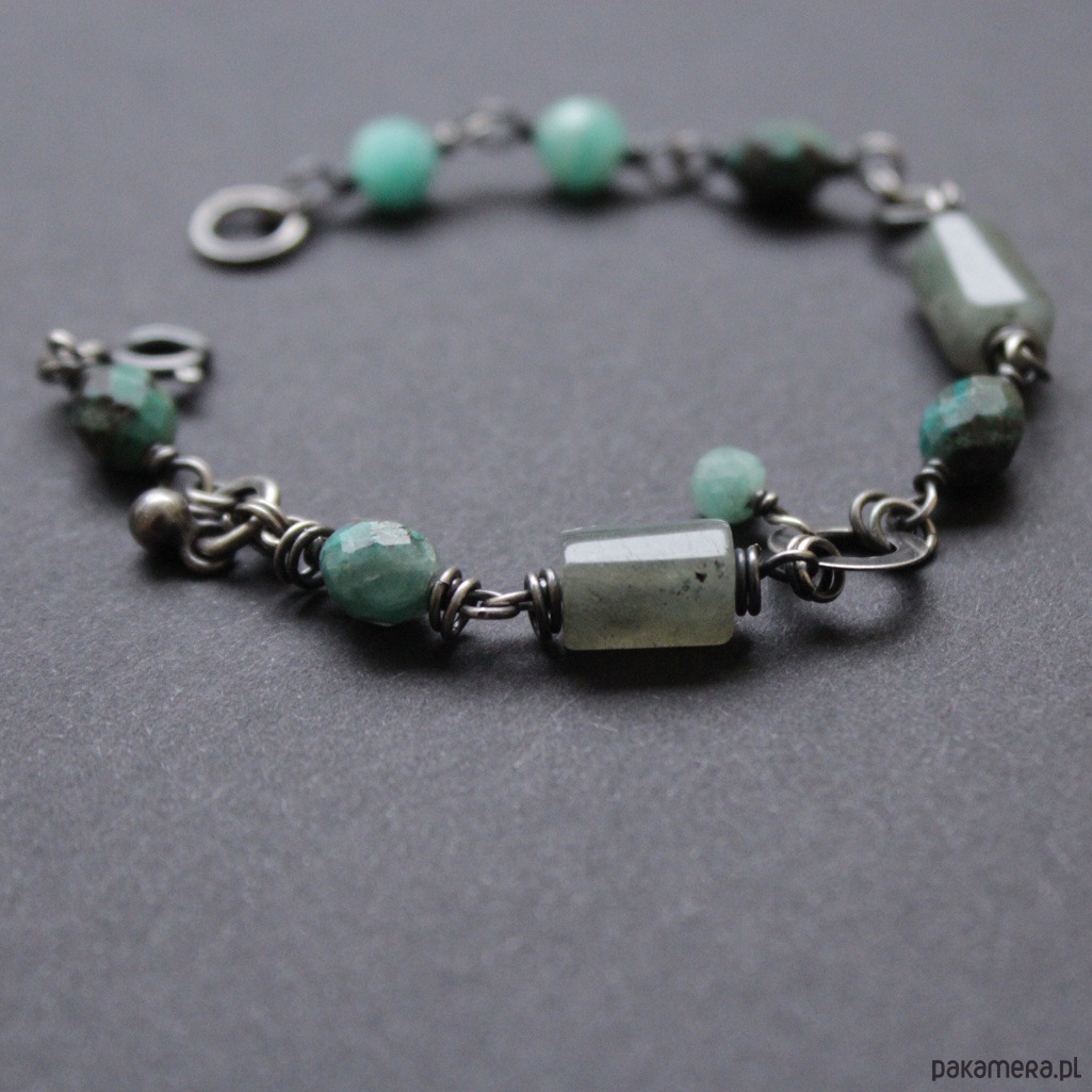 Bransoletka UNIKAT wykonana została z oksydowanego srebra próby 925 oraz minerałów: