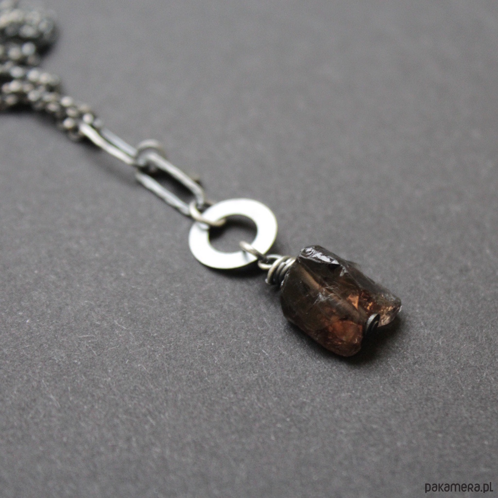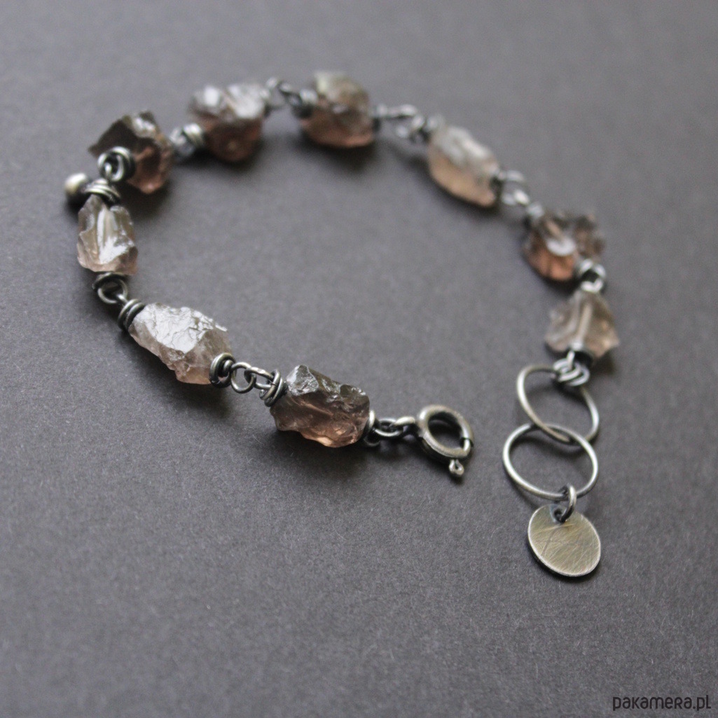Bransoletka UNIKAT wykonana została z oksydowanego srebra próby 925 oraz surowych bryłek kwarców dymnych wielkości 0,7-0,9 cm.