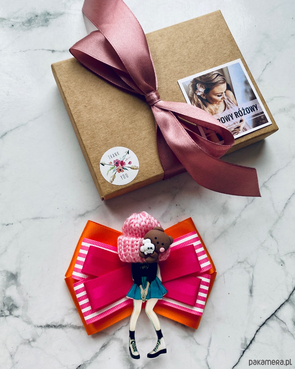 Broszka wykonana z wysokiej jakości taśm i dodatków.