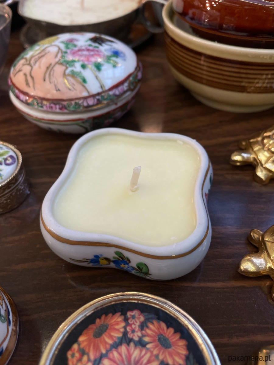 świeca vintage w unikatowym puzderku