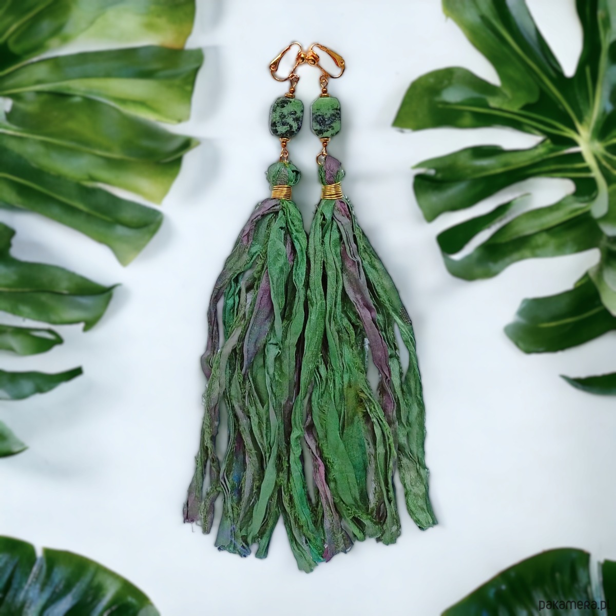 UNIKATOWE klipsy: jedwab : ekstremalnie długie : Sari 010
