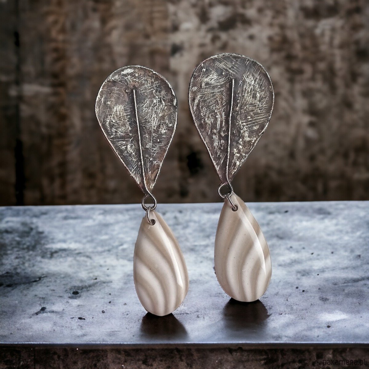 na bazie zawiesiłam łezki - krzemień pasiasty (30mm).
