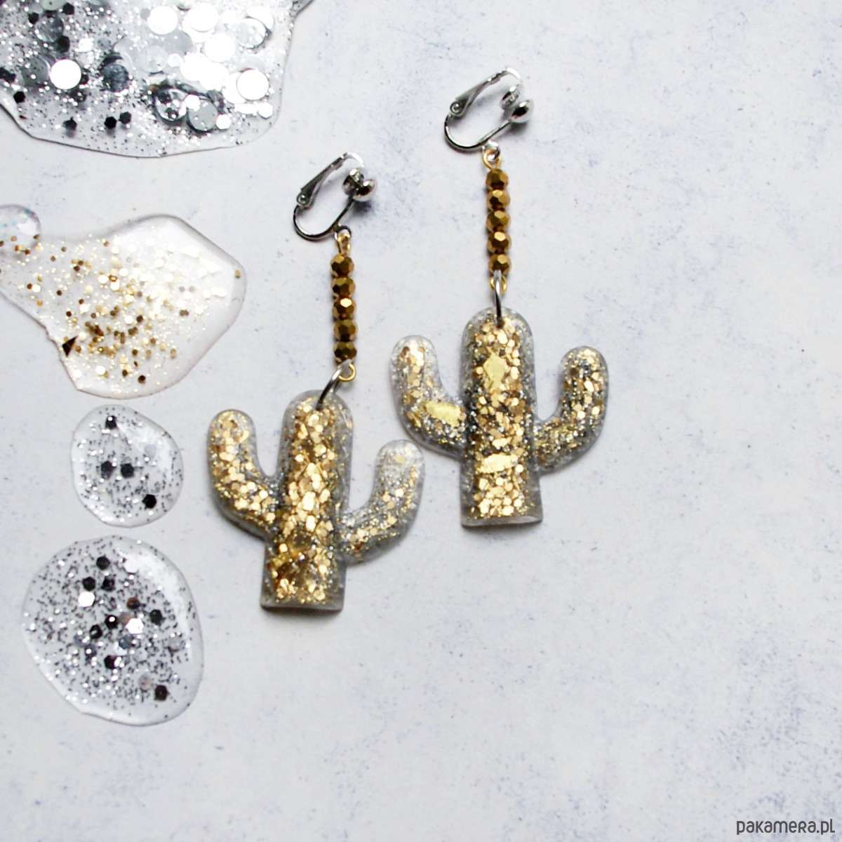 UNIKATOWE klipsy lub kolczyki - kaktusy glam