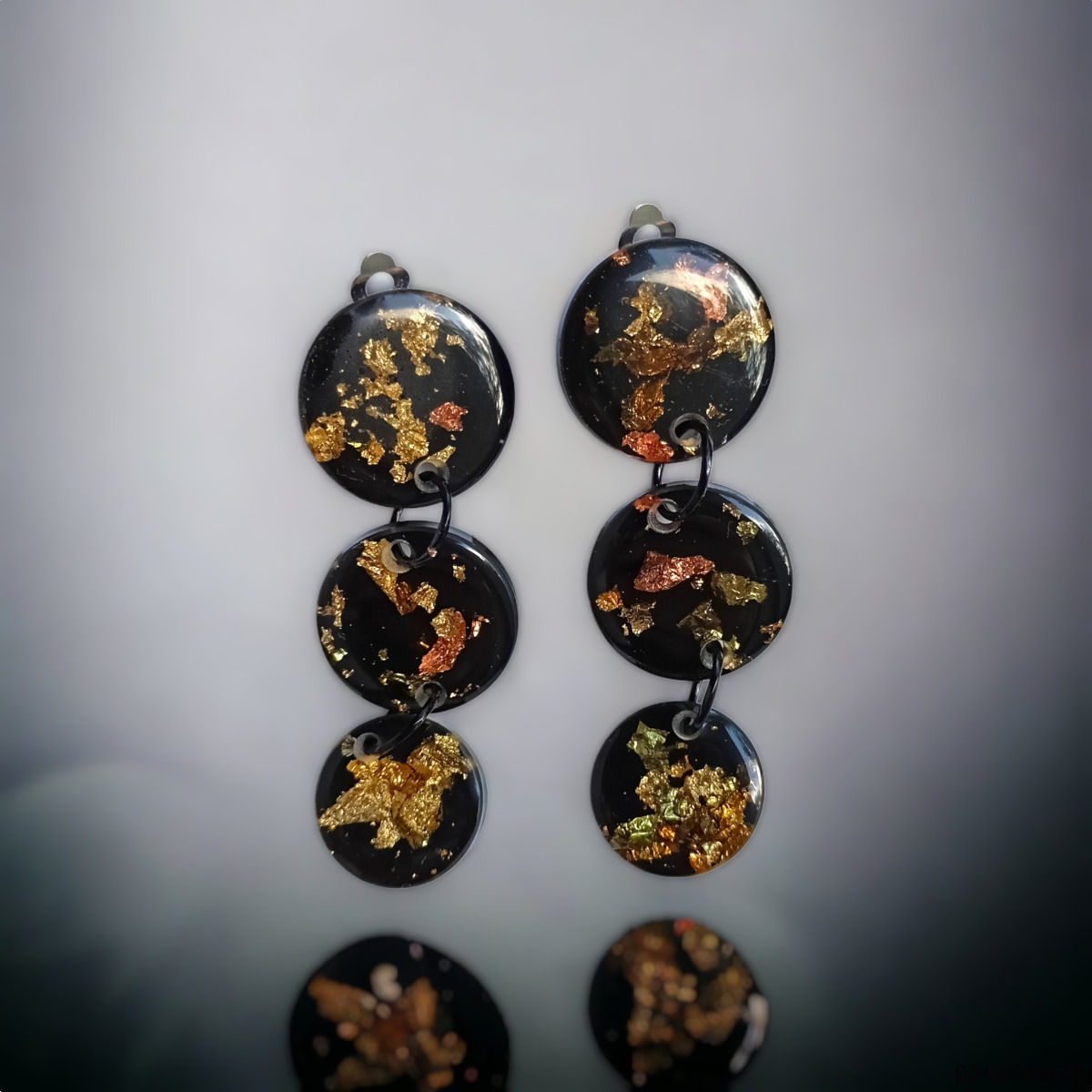 UNIKATOWE klipsy z żywicy : kolekcja METALLIC FALL