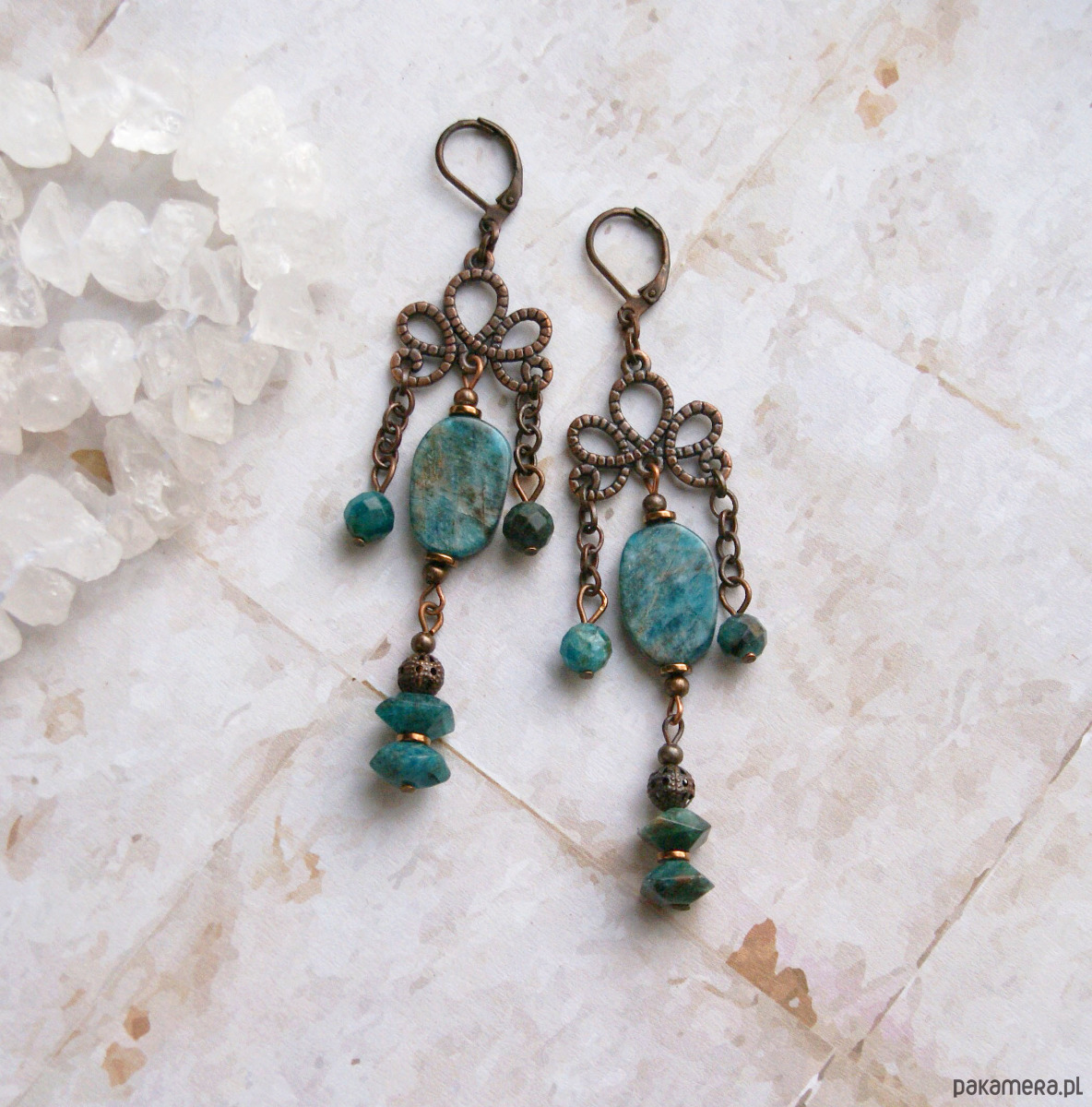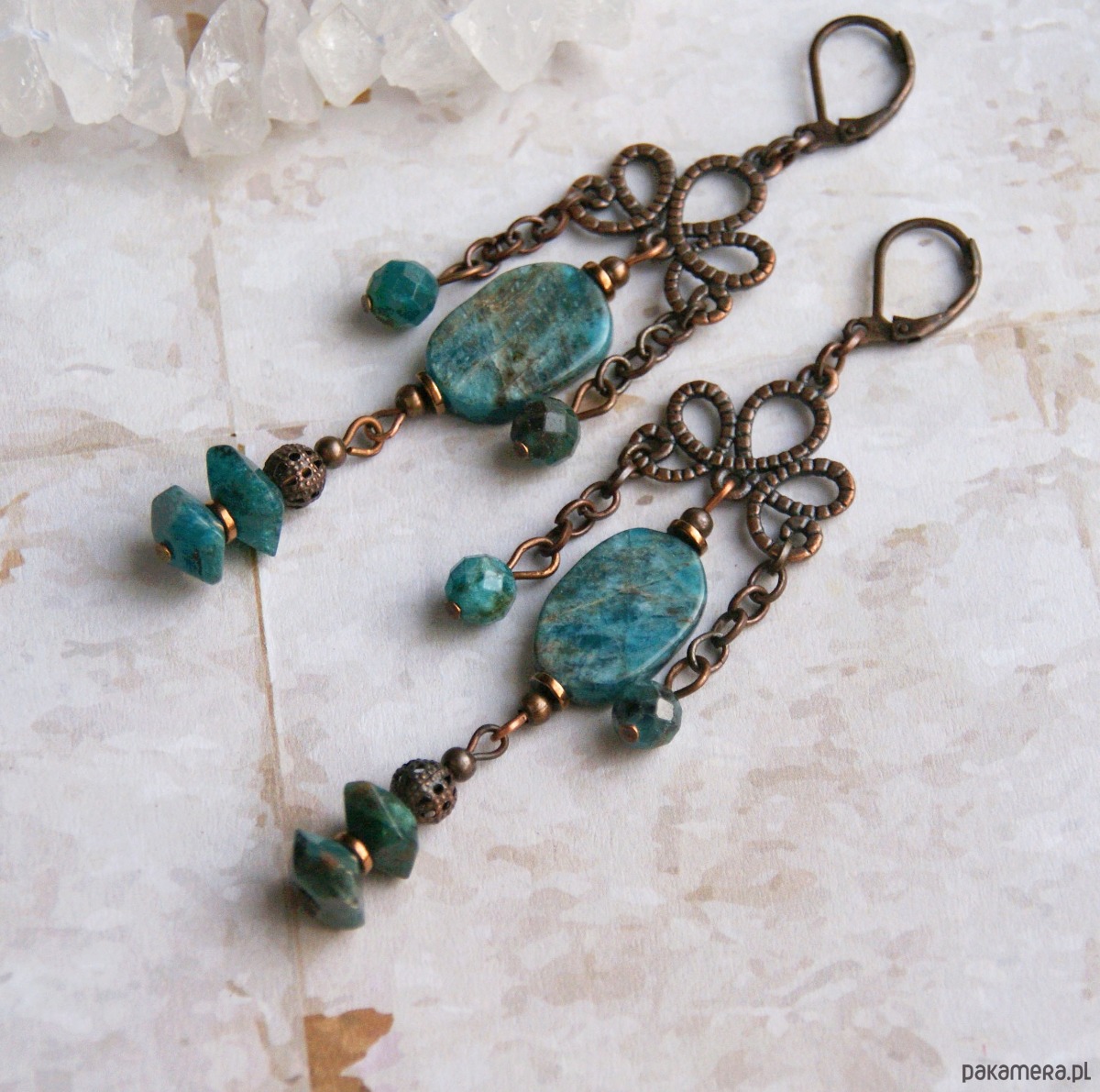 UNIKATOWE kolczyki : apatyt w miedzi