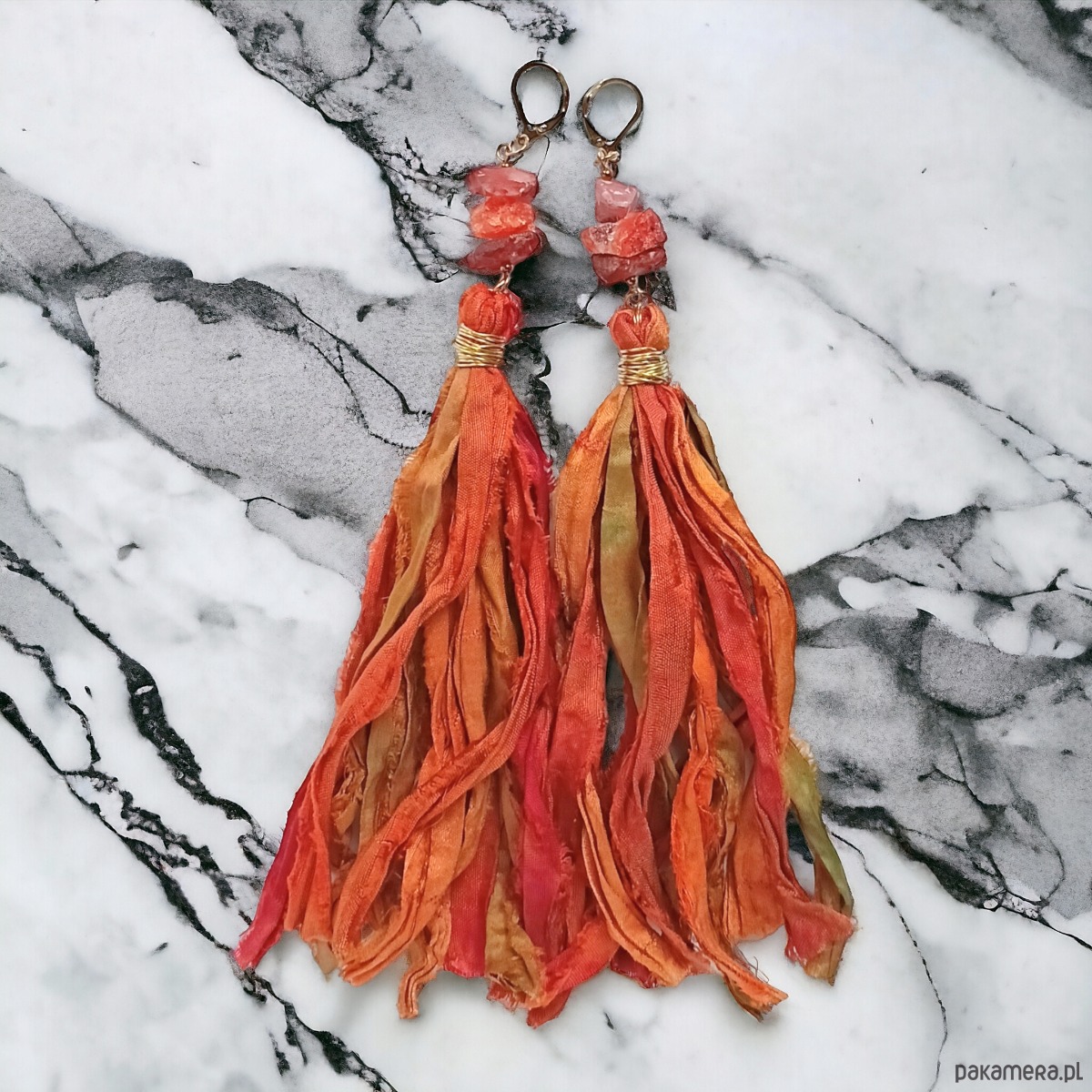 UNIKATOWE kolczyki chwosty : jedwab : bardzo długie : Sari 011