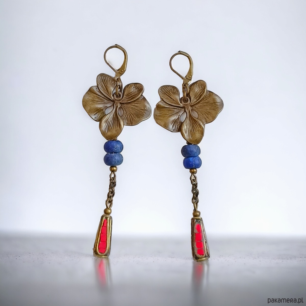 UNIKATOWE kolczyki : korale tybetańskie : storczyki
