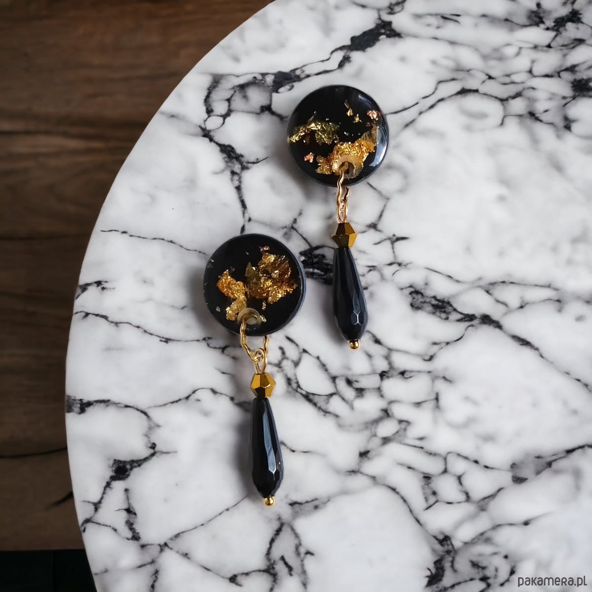 UNIKATOWE kolczyki z żywicy : kolekcja METALLIC FALL