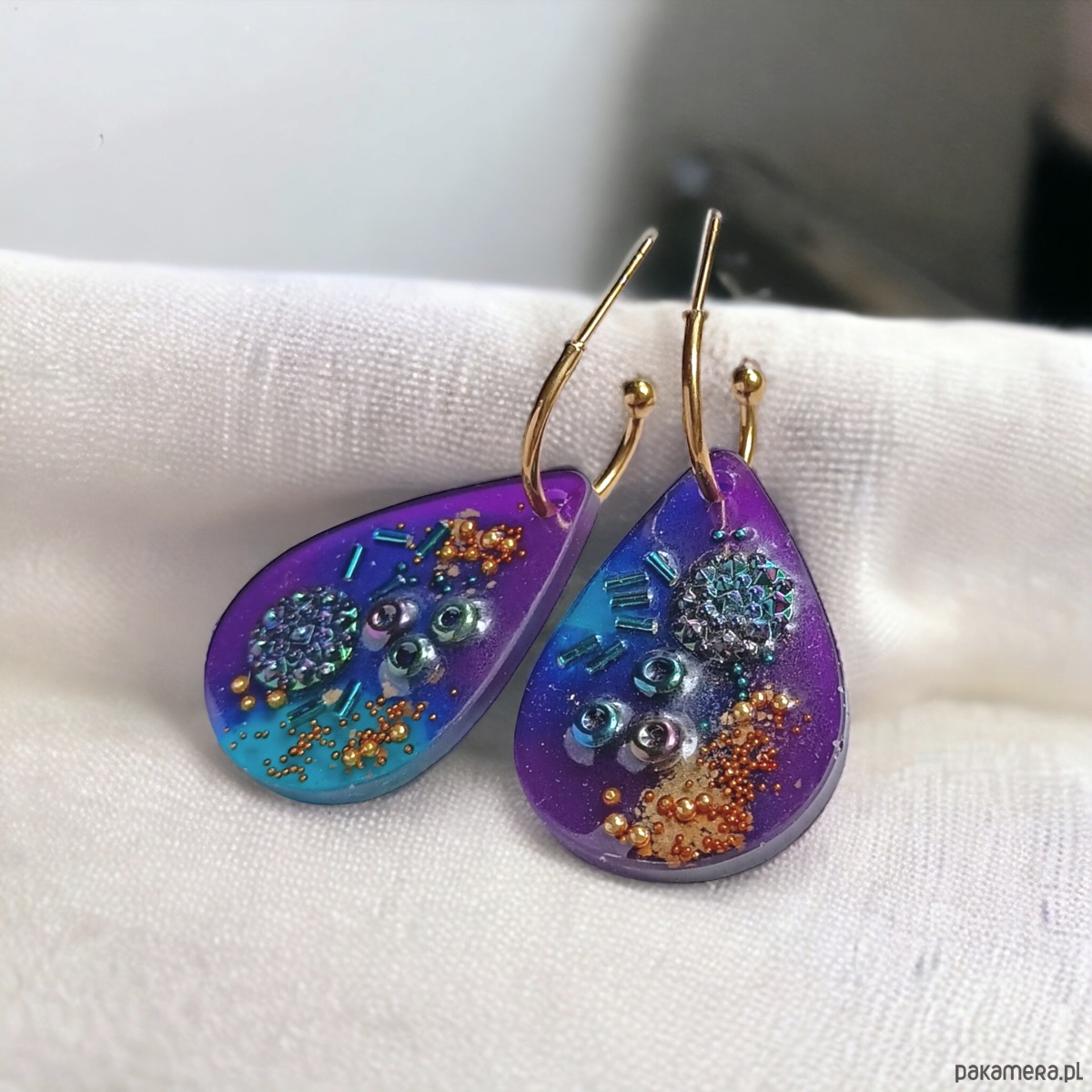 UNIKATOWE kolczyki z żywicy : kolekcja PICASSO fiolet