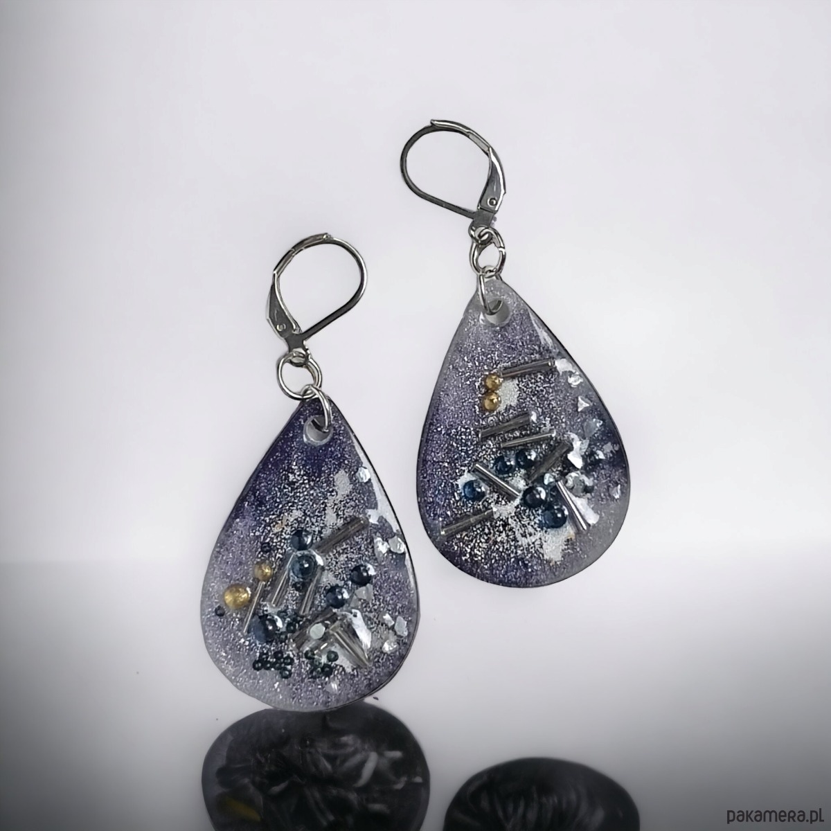 UNIKATOWE kolczyki z żywicy : kolekcja PICASSO szarofioletowe