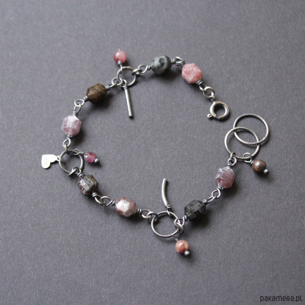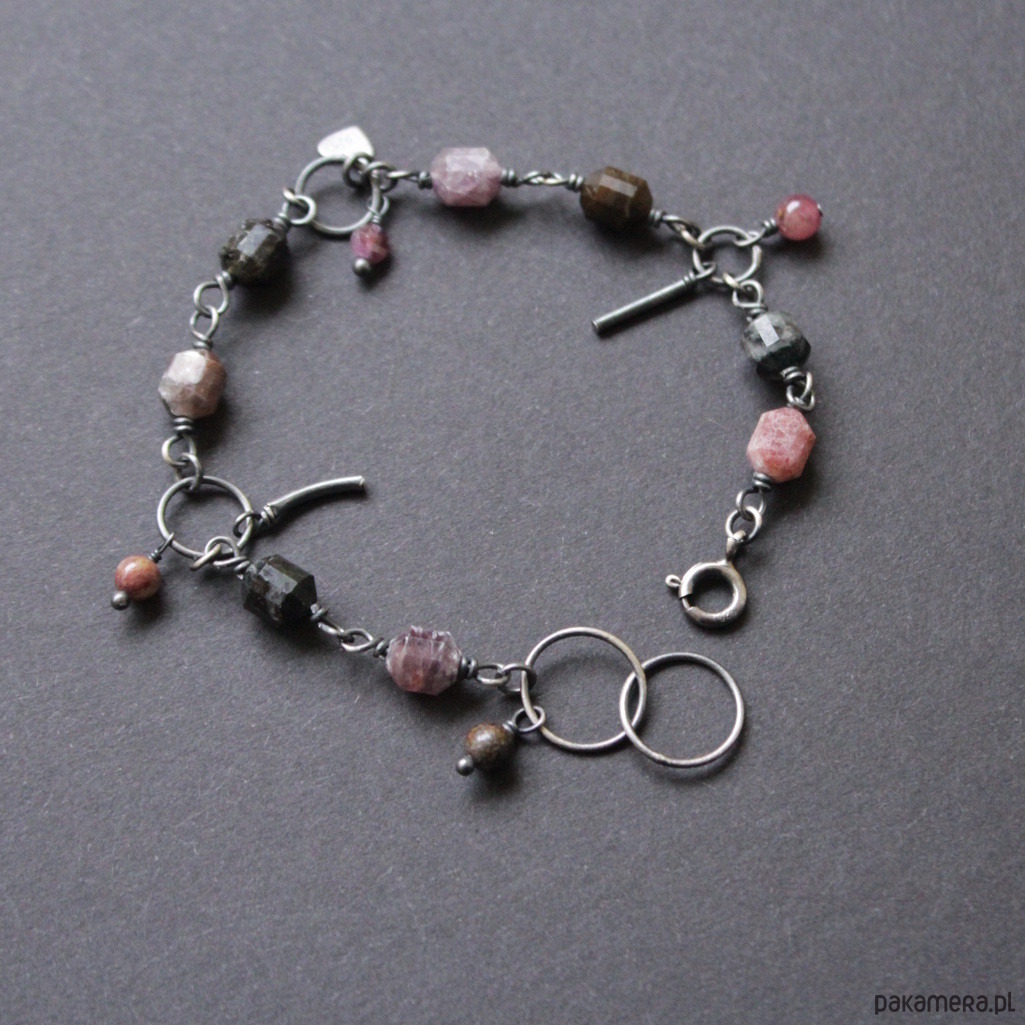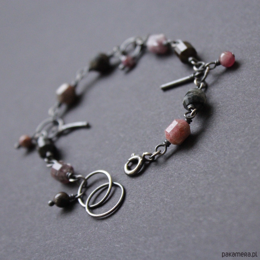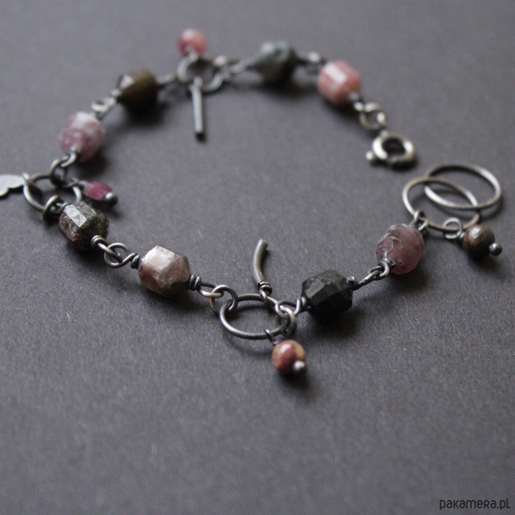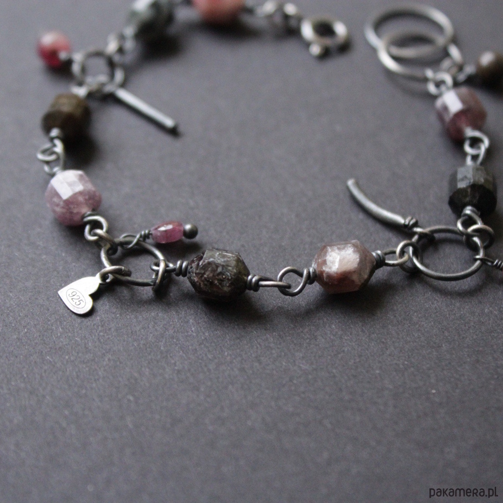 Bransoletka wykonana została z oksydowanego srebra próby 925 oraz pięknych bryłek turmalinów (0,7-0,8 cm).