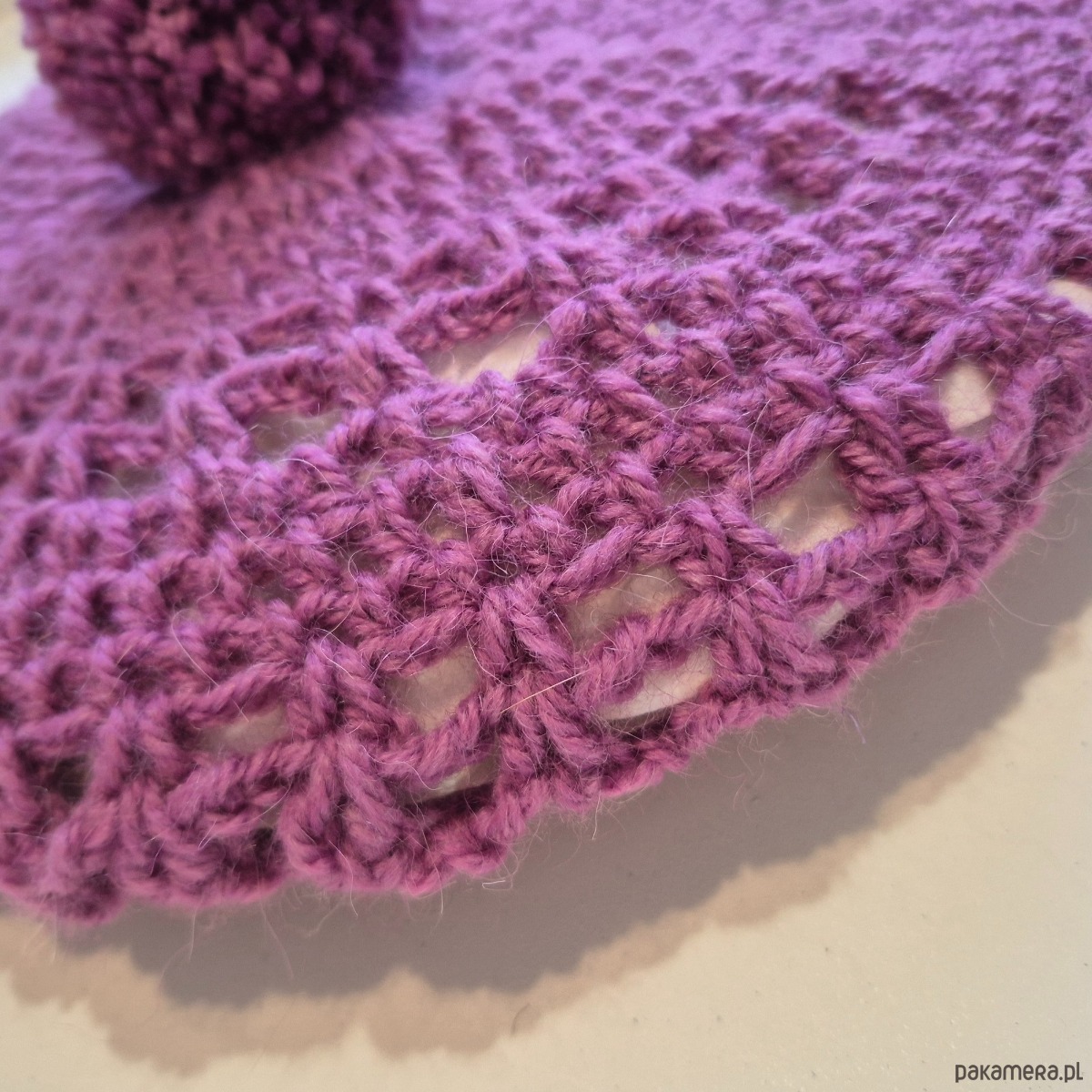 Unikatowy beret z pomponem, ręcznie zrobiony na szydełku z pięknej,delikatnej