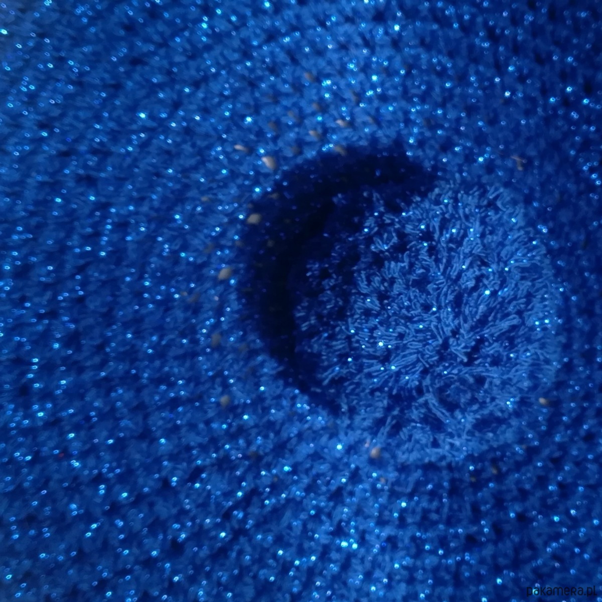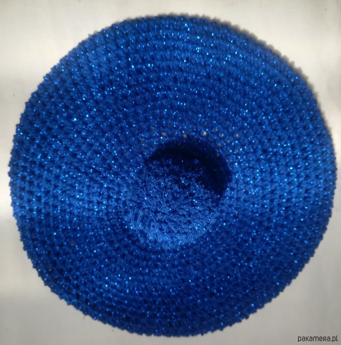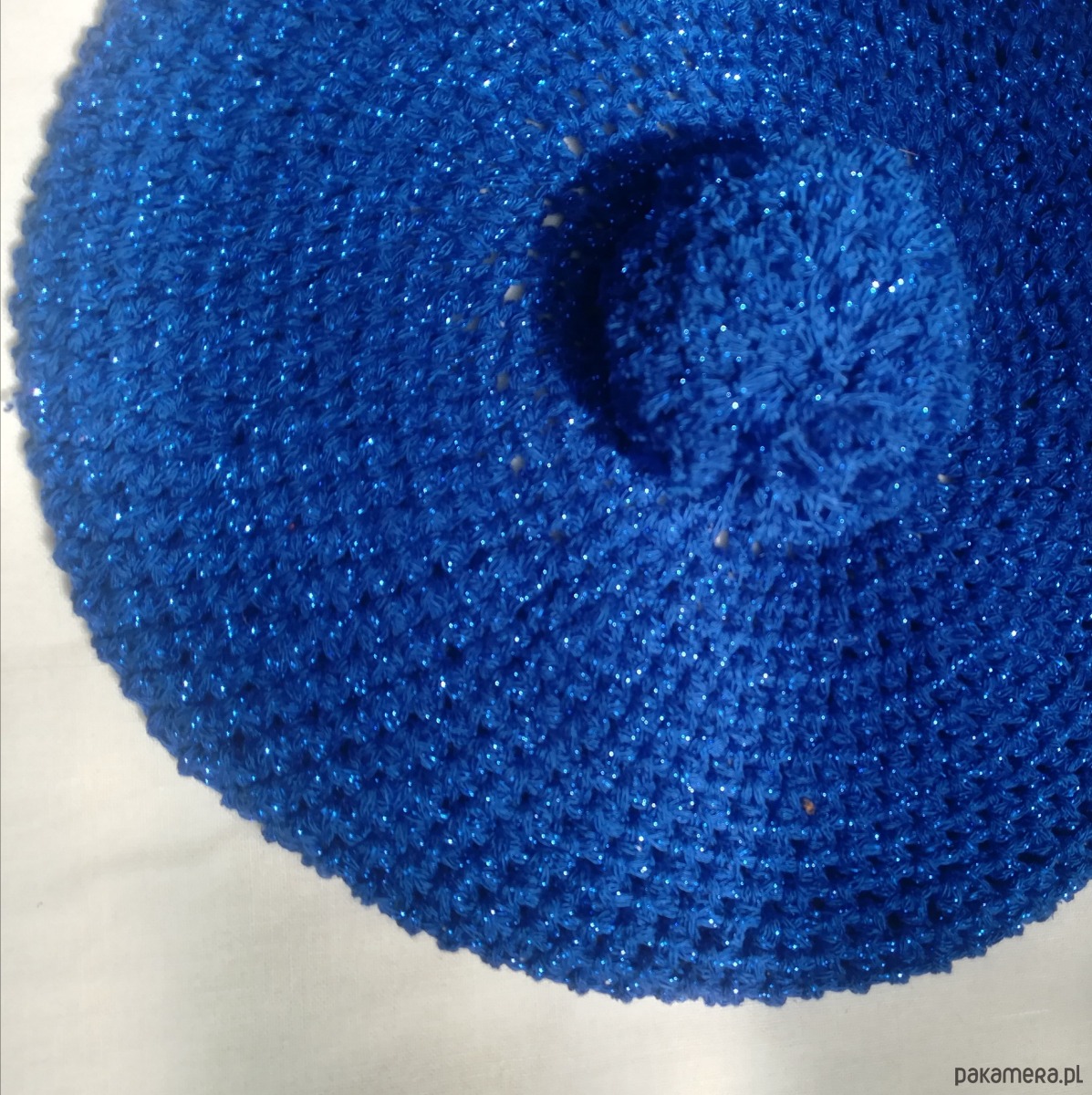 Unikatowy beret w kolorze szafirowym z błyszczącą nitką.