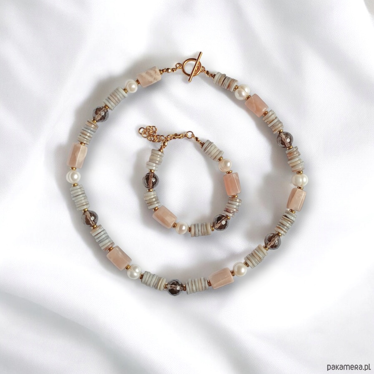 Niezwykły KOMPLET (naszyjnik + bransoletka) - starannie skomponowany z następujących kamieni: