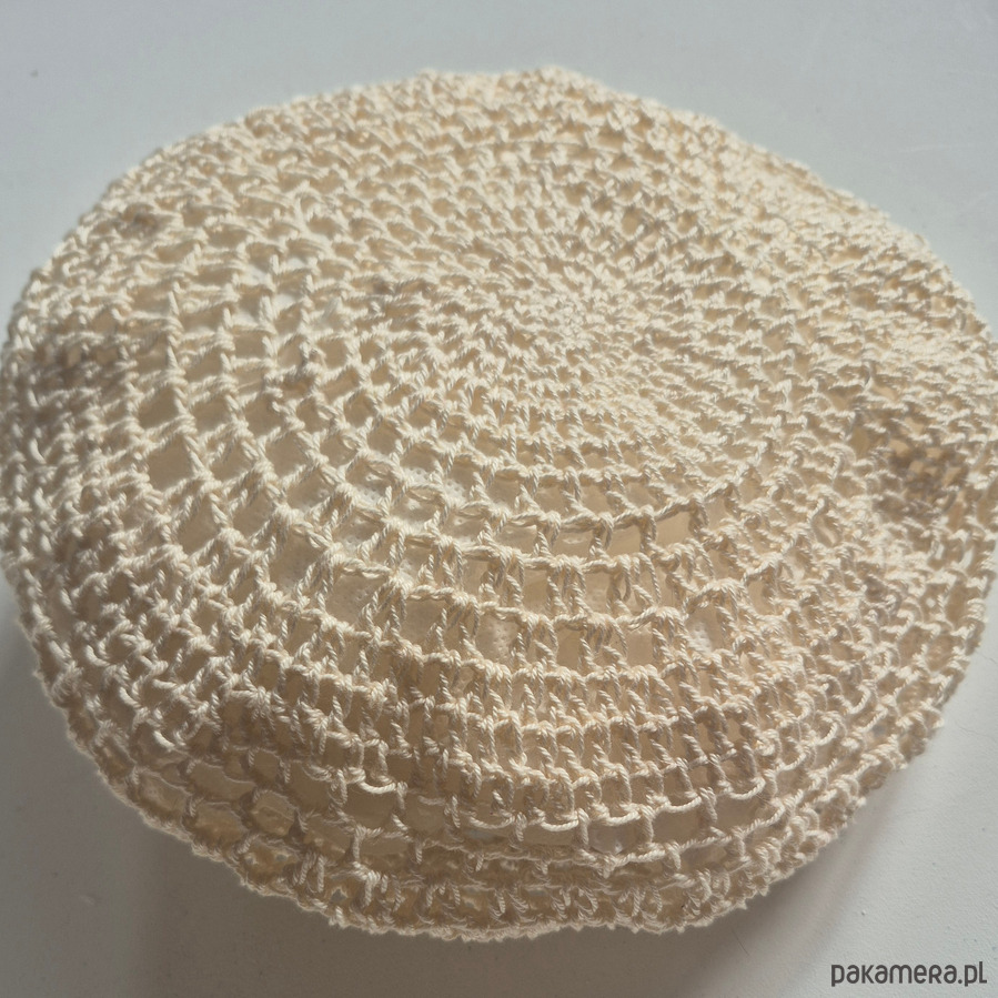 Unikatowy, letni beret zrobiony ręcznie na szydełku z białej włóczki bawełnianej.Miękka, plastyczna forma dobrze układająca się na głowie. Dzięki luźnej strukturze ażurowych oczek bardo przewiewny. Bardzo dekoracyjny. Doskonały dodatek do letniej garderoby.