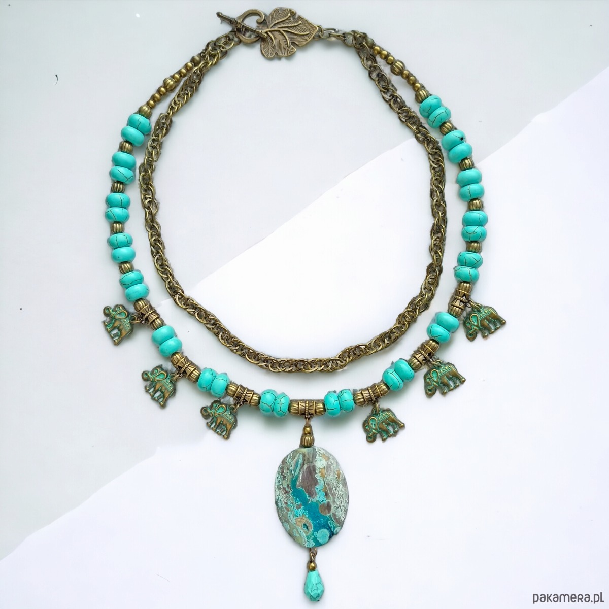 UNIKATOWY naszyjnik : jaspis : turkus i stare złoto : etno