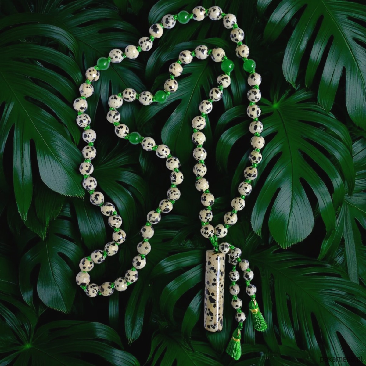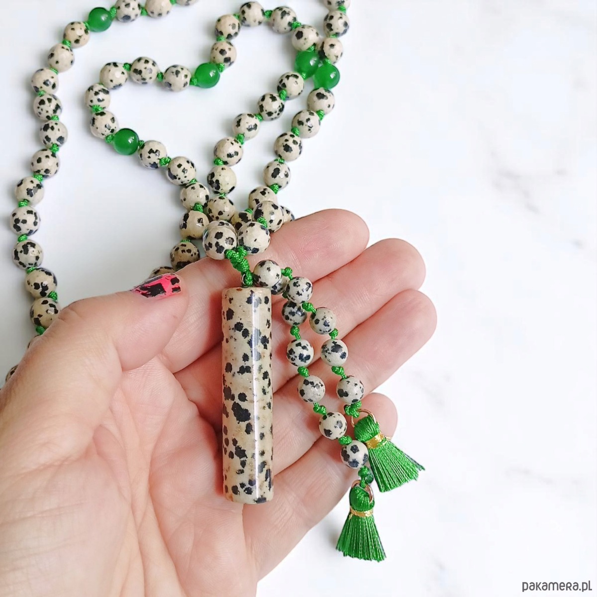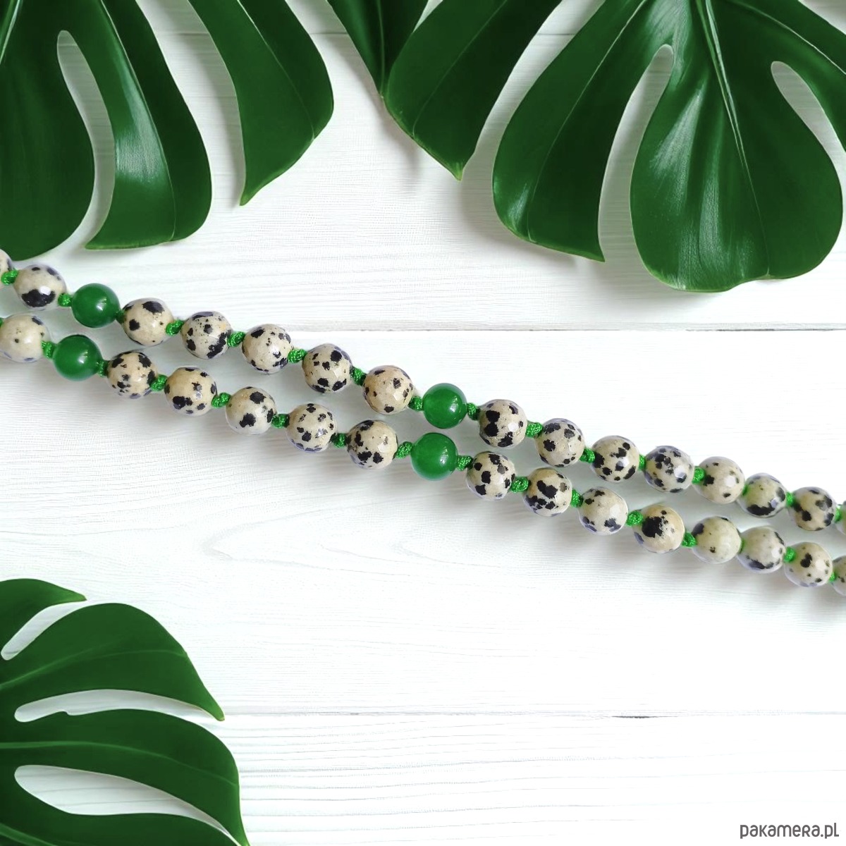 UNIKATOWY naszyjnik supełkowany : jaspis dalmatyński na zielono