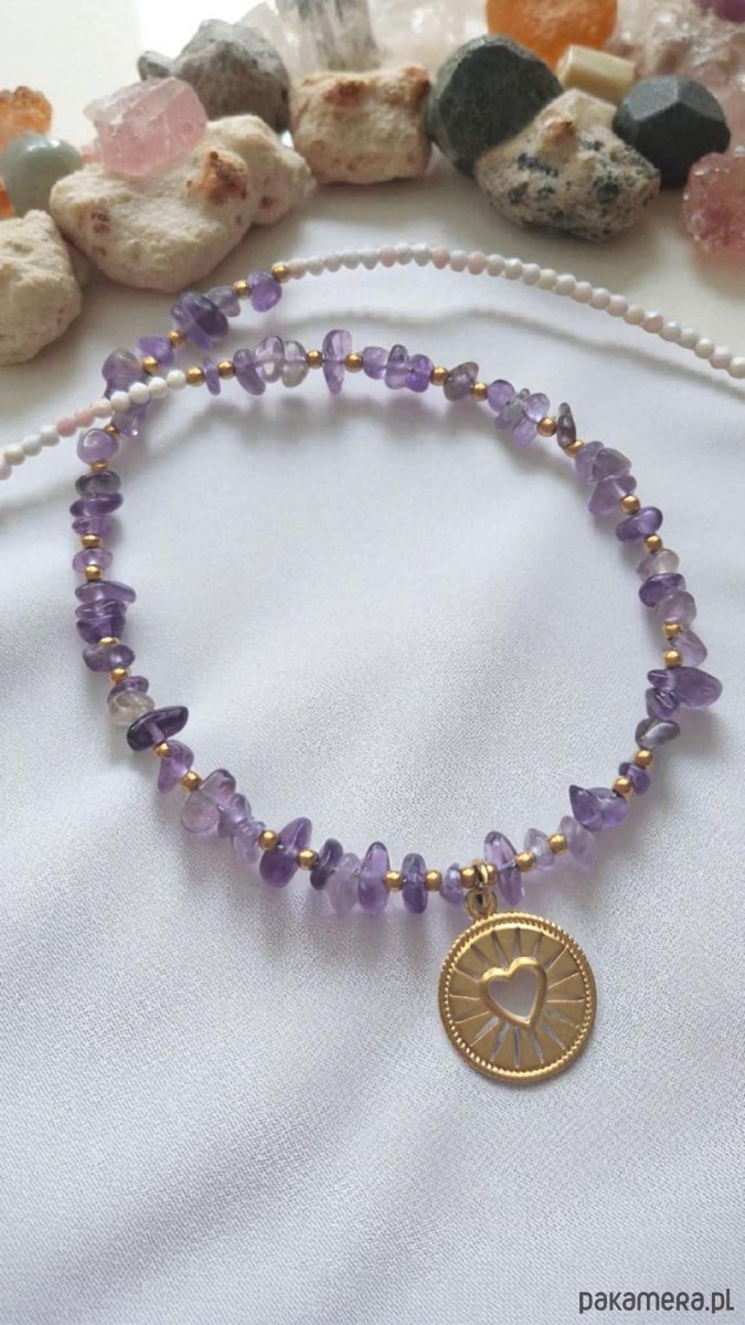 ✨ Ametyst – nazywany kamieniem harmonii i spokoju. Wspiera wyciszenie, redukuje stres i sprzyja równowadze emocjonalnej. Uważany jest również za talizman intuicji i rozwoju duchowego.
