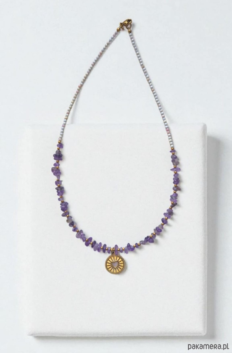 Unikatowy naszyjnik z ametystem, hematytem i muszlą – z zawieszką i zapięciem ze stali szlachetnej